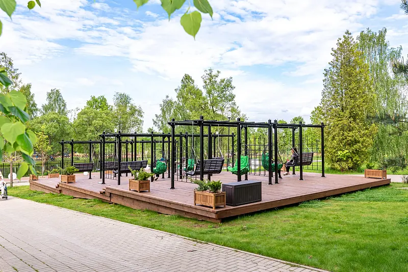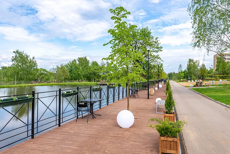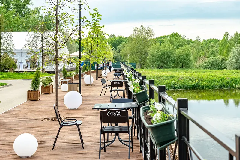 * Территория большая и очень продуманная. Есть прокат самокатов, велосипедов, есть зооуголок. Площадка для волейбола и футбола и на улице и закрытые площадки. Много крытых палаток для компании и шашлыков.