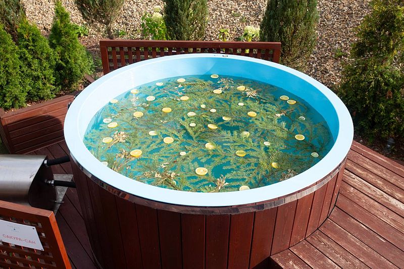 Парк работает круглый год. Температура воды в бочке 37 – 42 градуса. Вместимость до 6-8 человек одновременно.