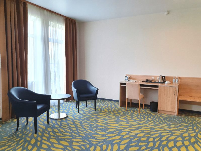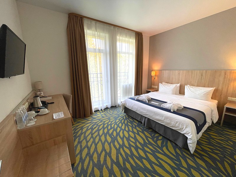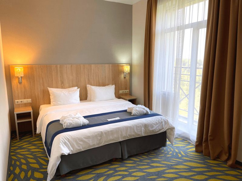 Номер повышенной комфортности площадью 21 м2 с одной двуспальной кроватью «King-size» или двумя односпальными кроватями предназначен для комфортного размещения гостей.