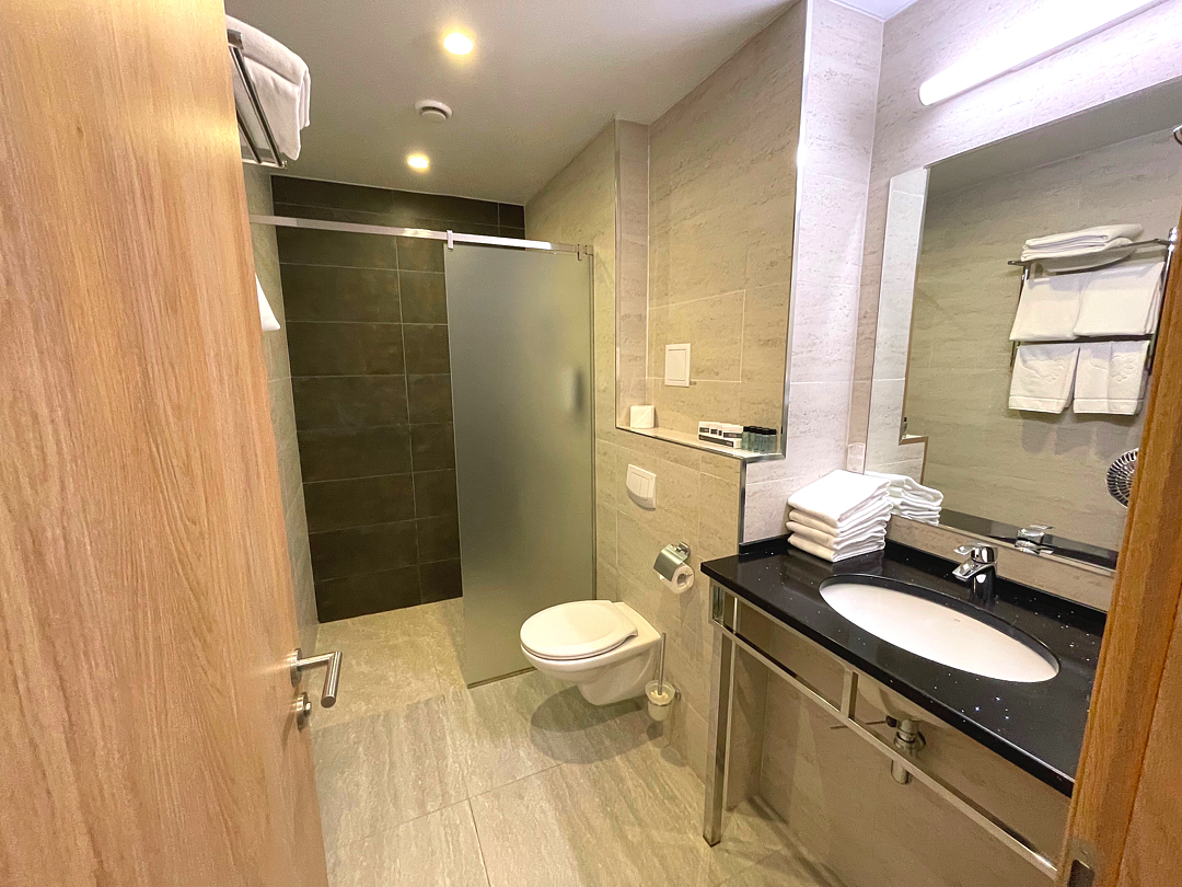 Номер укомплектован плазменной панелью, рабочим местом, телефоном, кондиционером, сейфом, чайной станцией и мини-холодильником. В номер при заезде предоставляются тапочки и махровые халаты, бутилированная вода. В номере имеется возможность предоставления дополнительного спального места: евро-раскладушка или детская кроватка-манеж.