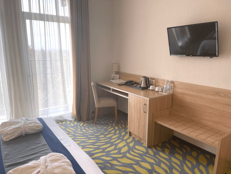 * Номера очень удобные, очень чистые, бар пополняется 1 раз в 3 дня и входит в all inclusive. Есть кондиционер, чайник, вода, тапочки, халат, телевизор.