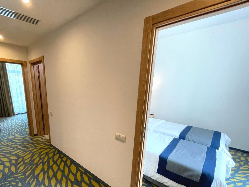 Большой двухкомнатный номер площадью 37 м2 с изолированными спальнями, оборудованные одной двуспальной кроватью «King-size» или двумя односпальными кроватями.