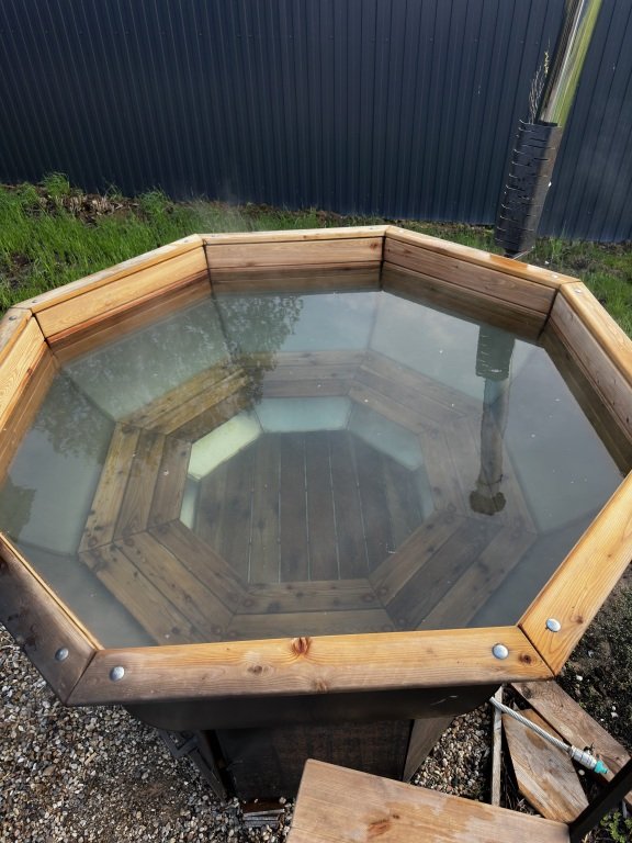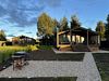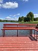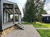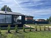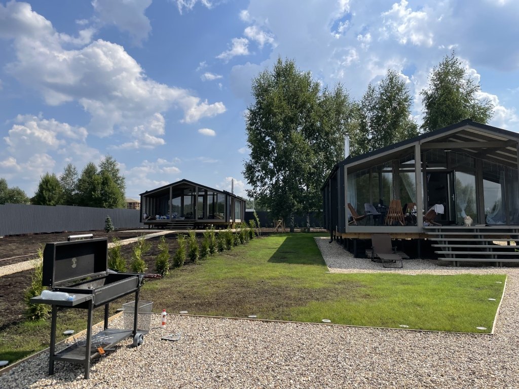 На участке 16 соток расположены 2 домика с территорией примерно 8 соток у каждого. В домиках есть просторная терраса с видом, панорамные окна с видом на закат и на реку, камин. На территории имеется парковка на 4 автомобиля.