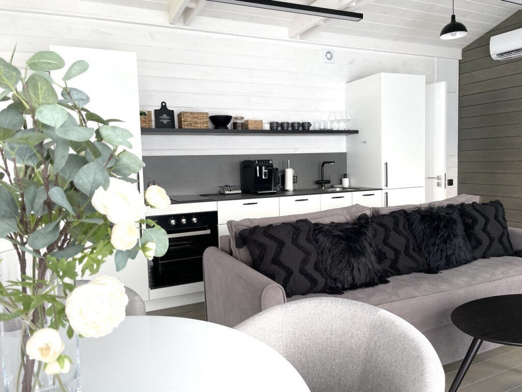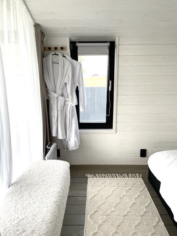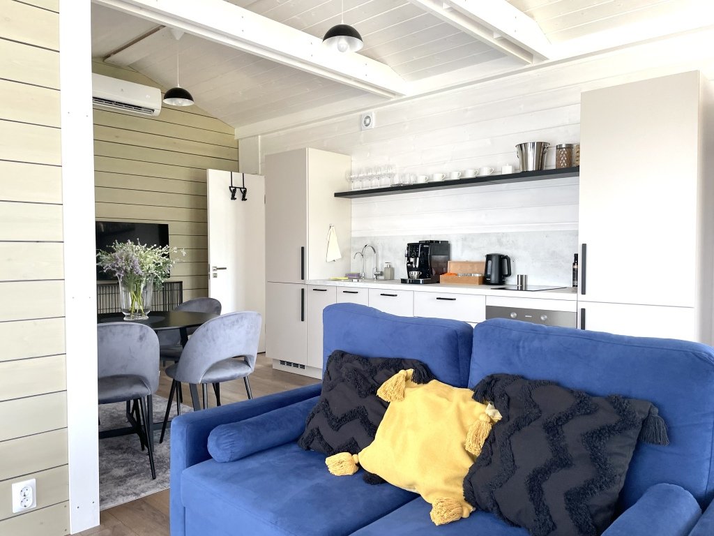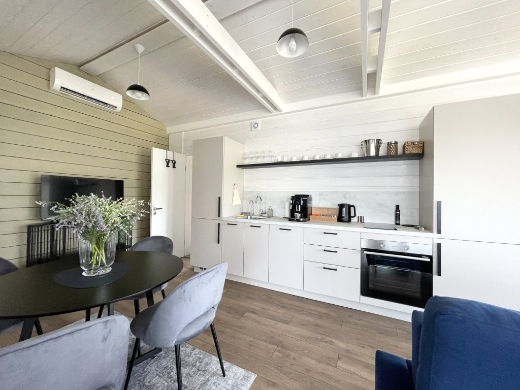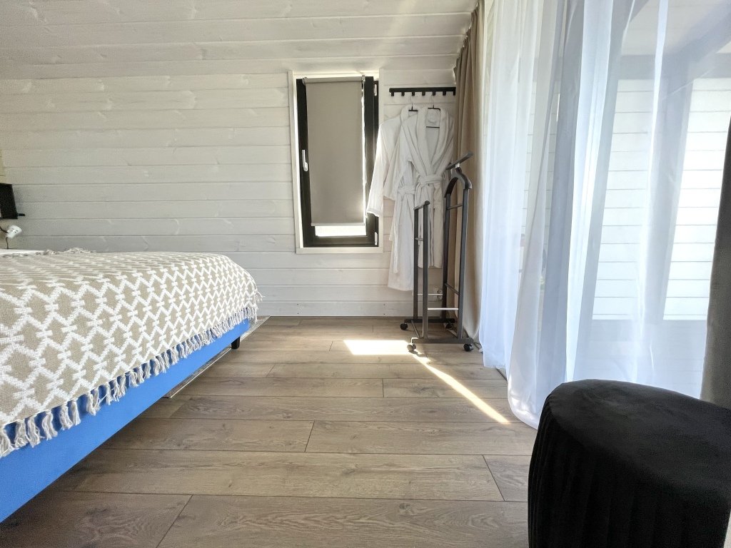 В коттеджах есть всё необходимое для отдыха. Есть полностью оборудованная всей необходимой техникой кухня: полноценный холодильник с морозильной камерой, духовой шкаф, посудомоечная машинка, варочная панель, кофемашина с зерновым кофе, чай, оливковое и подсолнечное масло, соль, сахар, специи всегда с запасом. В доме установлен кондиционер, каминная печь, в просторном санузле душевая кабина, стиральная машинка, тёплый пол. Имеется вся необходимая посуда, постельное бельё, полотенца разных размеров, в том числе пляжные, косметические принадлежности, фен, утюг.