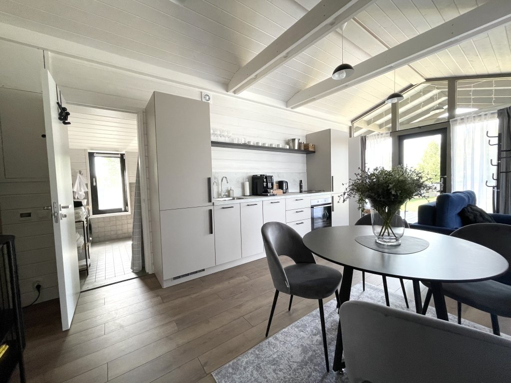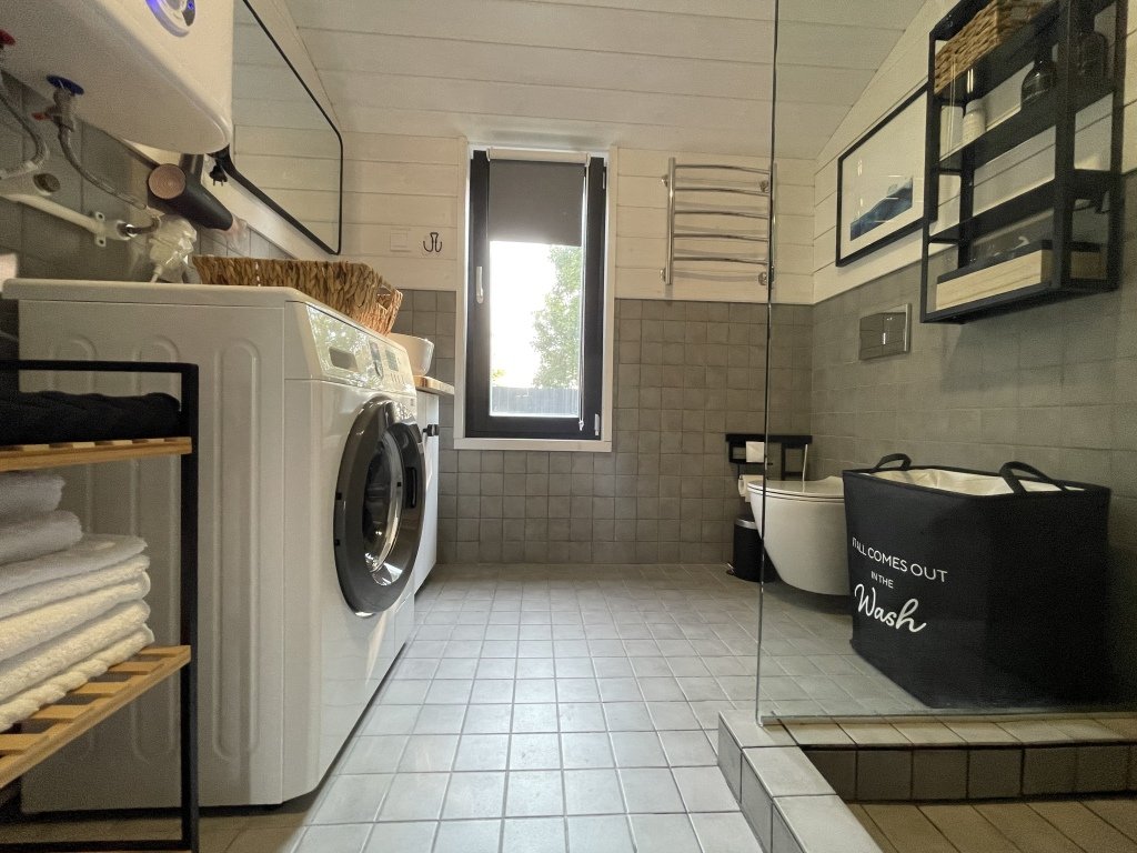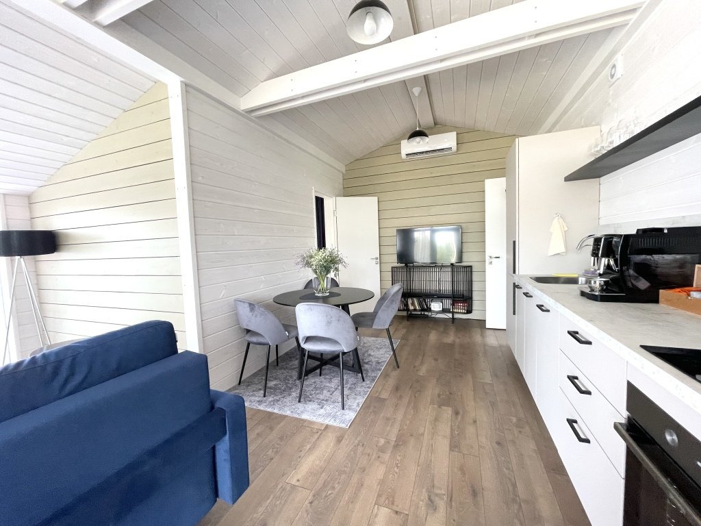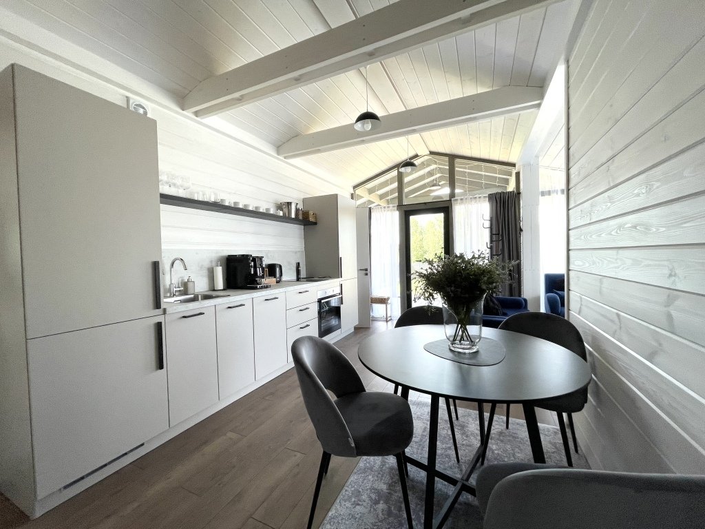 В коттеджах есть всё необходимое для отдыха. Есть полностью оборудованная всей необходимой техникой кухня: полноценный холодильник с морозильной камерой, духовой шкаф, посудомоечная машинка, варочная панель, кофемашина с зерновым кофе, чай, оливковое и подсолнечное масло, соль, сахар, специи всегда с запасом. В доме установлен кондиционер, каминная печь, в просторном санузле душевая кабина, стиральная машинка, тёплый пол. Имеется вся необходимая посуда, постельное бельё, полотенца разных размеров, в том числе пляжные, косметические принадлежности, фен, утюг.