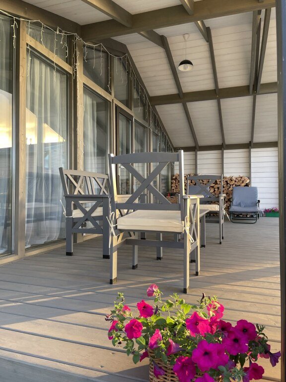 Также на территории установлен удобный мангал, лежаки с зонтиком, коврики для йоги, бадминтон, волейбольный мяч и прочий спорт инвентарь.