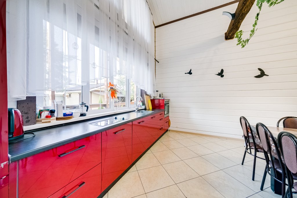 Коттедж оборудован бытовой техникой: посудомоечная машина, стиральная машина, духовка, микроволновка, плита, чайник и фен. Также есть стол на 16 человек, посуда, проектор, колонка, настольные игры и бесплатный высокоскоростной Wi-Fi.