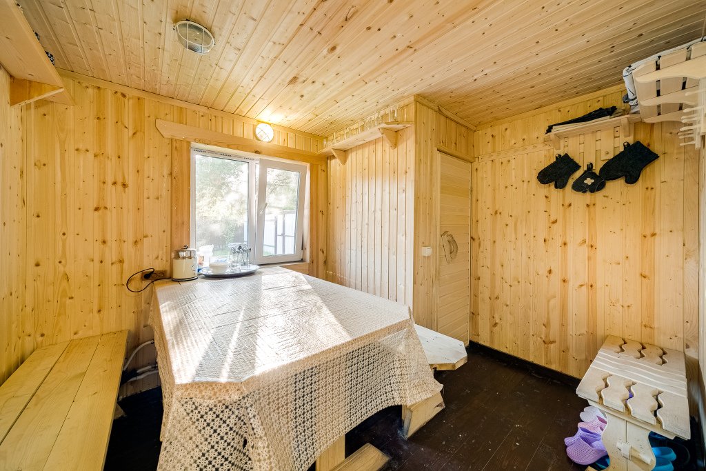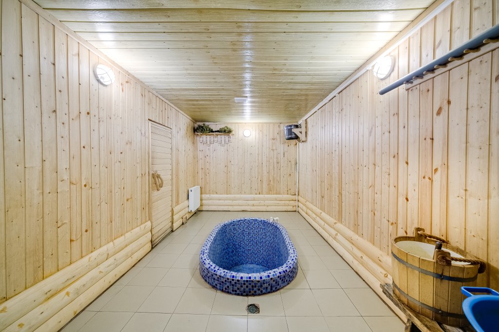 Также за дополнительную плату гостям доступна баня. В ней есть комната отдыха, купель с ледяной водой, парная, наливное ведро, душ и санузел.