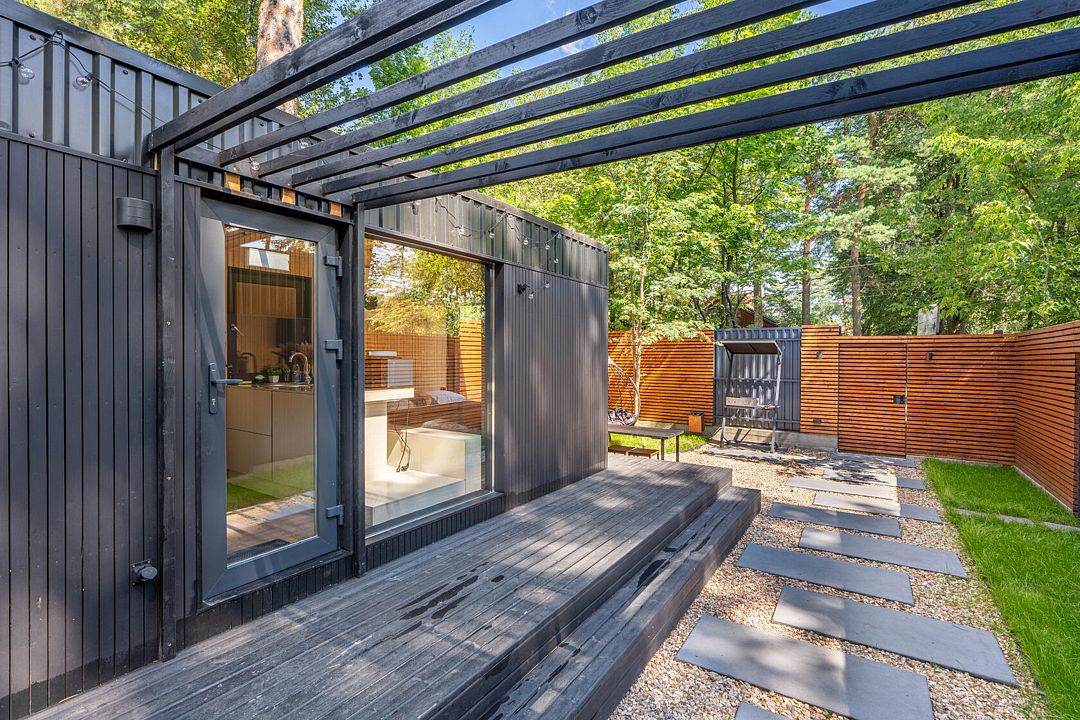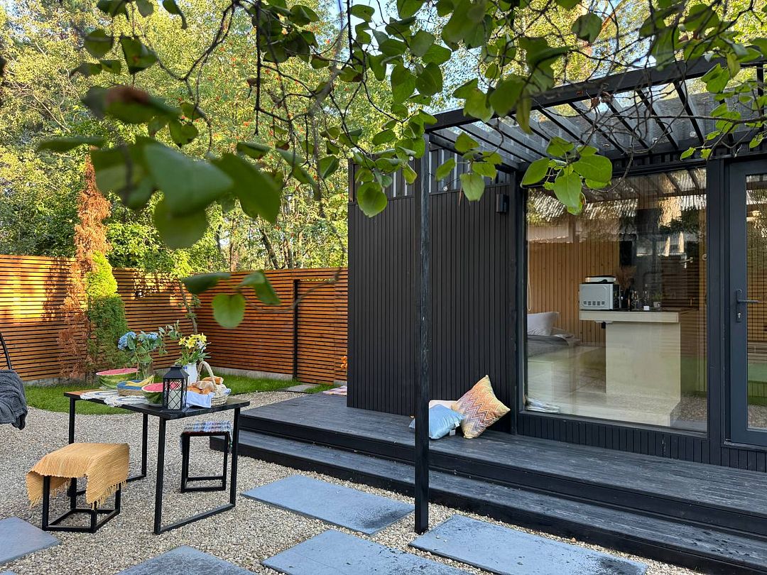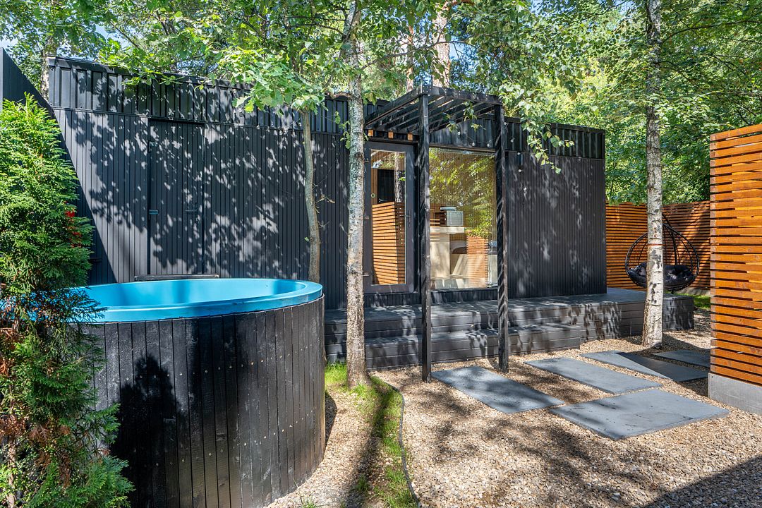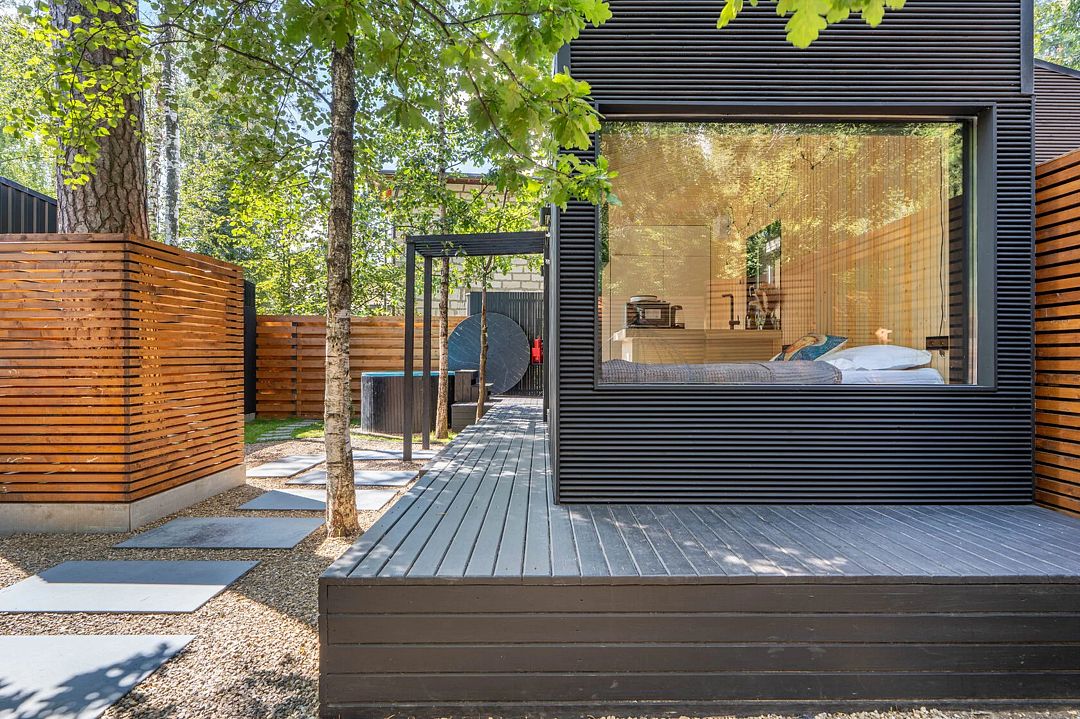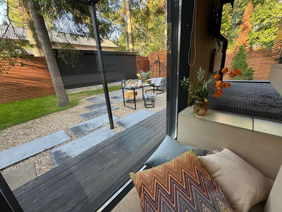 Ультрасовременный домик для отдыха вдвоем с сауной, мангальной зоной и купелью на берегу Немчиновского пруда. В доме могут проживать не более 2 человек (+ 1 ребенок до 2 лет).