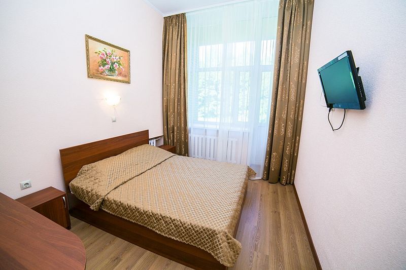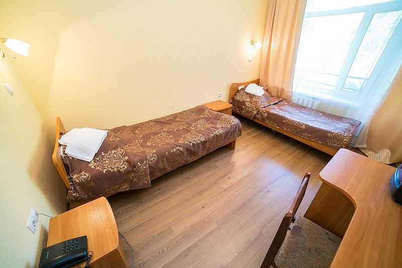 Комфортабельный уютный однокомнатный номер с красивым видом из окна и раздельными кроватями. В номере: телевизор, мини-холодильник, телефон.