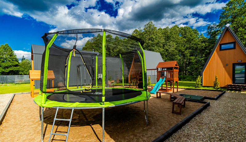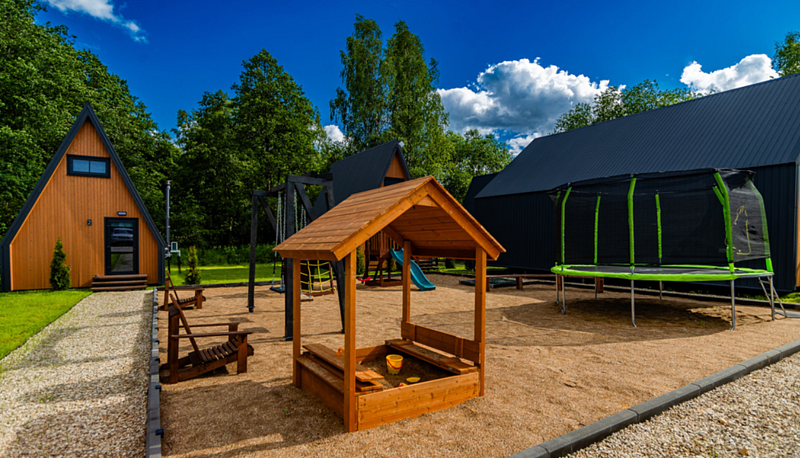 На территории есть зона отдыха для детей и взрослых: детская площадка со шведской стенкой, рукоходом, балконом, качелями, скалодромом и горкой; песочница с игрушками для песка; батут Swollen Comfort Overlap 12 FT (366 см)/каркасный/с защитной сеткой; качели для детей и взрослых; кресла для релакса «Адирондак»; также есть настольные игры и игры на свежем воздухе.