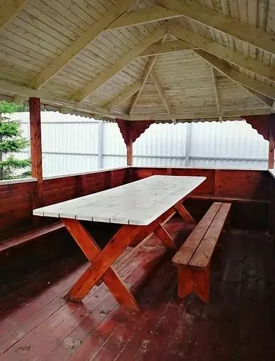 Если вы не являетесь гостями коттеджей, но хотите с удовольствием провести время на природе в кругу друзей или приятной компании, то к вашим услугам уютная мангальная зона и большая деревянная беседка.