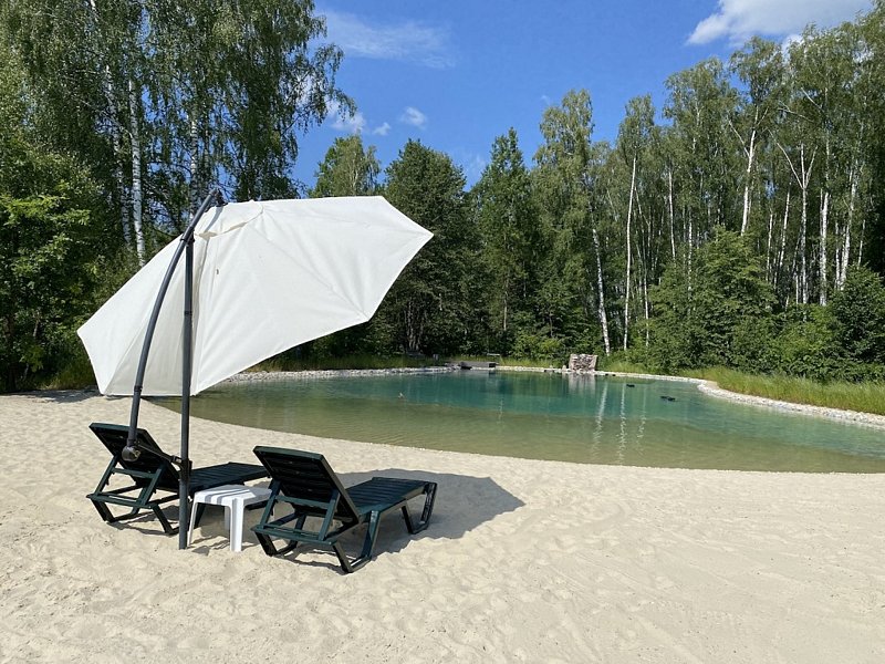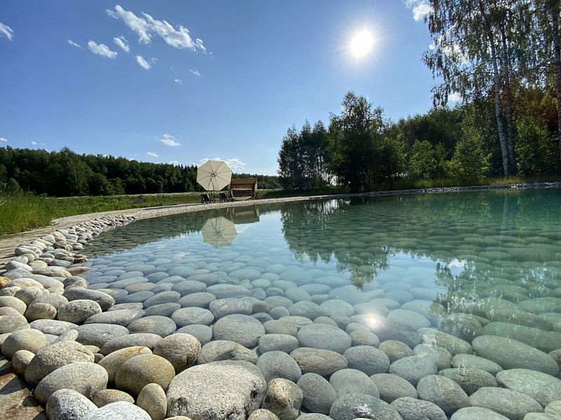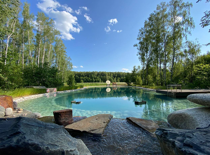Тип бассейна: открытый бассейнРядом с бассейном: шезлонги, зонтики, полотенцаПлощадь: 900 м²Глубина (диапазон): от 50 до 300 смПериод работы: летний сезонБольшой (900 кв. м) красивый плавательный пруд утопает в зелени леса. Глубина от 0,5 метров (для самых маленьких) до 3 метров для ныряния с пирса. Мощная система фильтрации и очистки позволяет поддерживать воду в идеальном состоянии. Постоянно работают 4 скиммера для сбора листьев и мелкого мусора с поверхности воды и аэратор для насыщения водоёма кислородом.