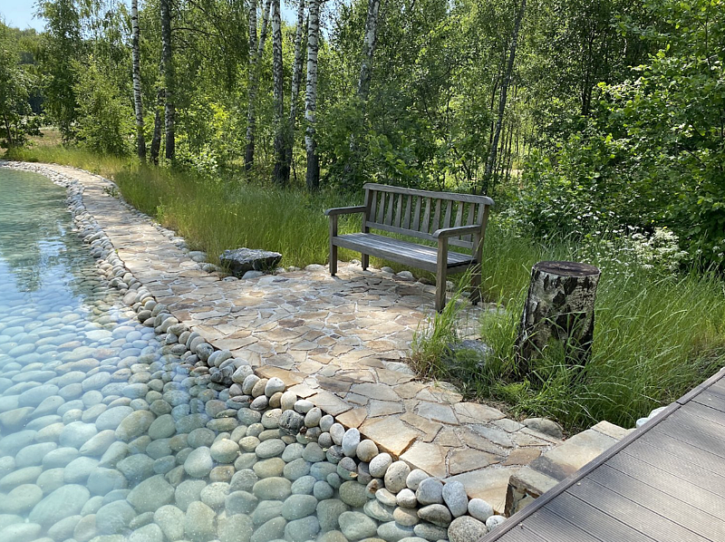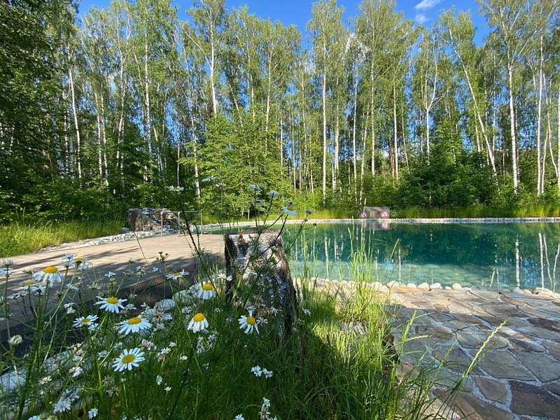 Читать полностьюБольшой (900 кв. м) красивый плавательный пруд утопает в зелени леса. Глубина от 0,5 метров (для самых маленьких) до 3 метров для ныряния с пирса. Мощная система фильтрации и очистки позволяет поддерживать воду в идеальном состоянии. Постоянно работают 4 скиммера для сбора листьев и мелкого мусора с поверхности воды и аэратор для насыщения водоёма кислородом.