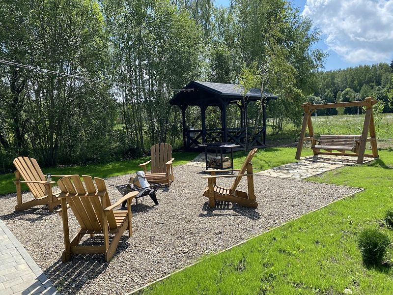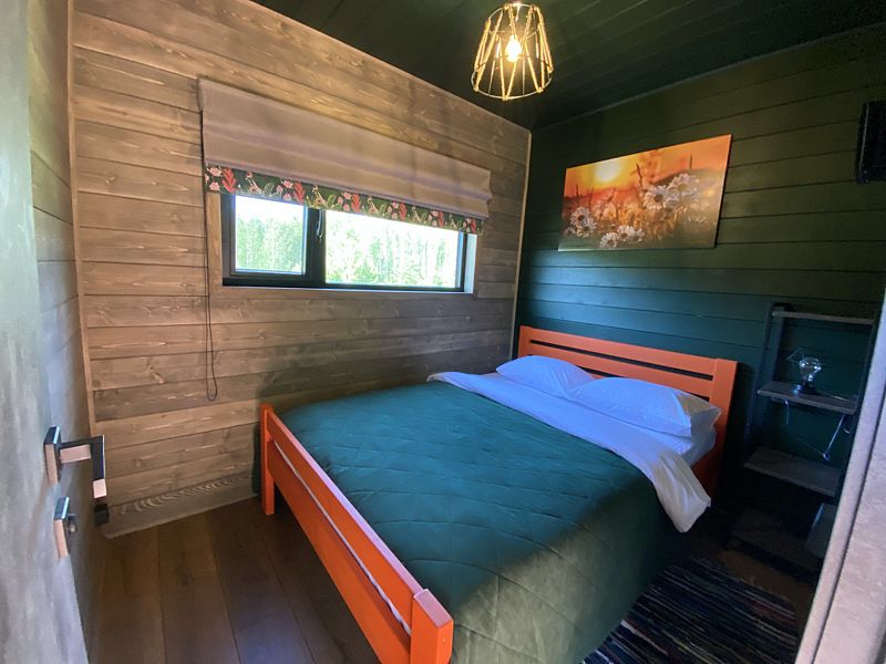 Домик в лесу с беседкой. Полностью укомплектован всем необходимым для комфортного проживания. Кухня - гостиная (12,5 кв. м) с диваном; спальня (6 кв. м) с 2-х спальной деревянной кроватью с ортопедическим матрацем; ванная комната (2,8 кв. м) с бойлером на 50 литров.