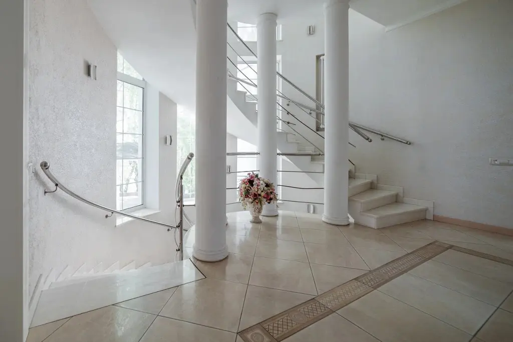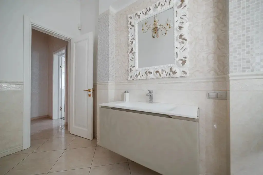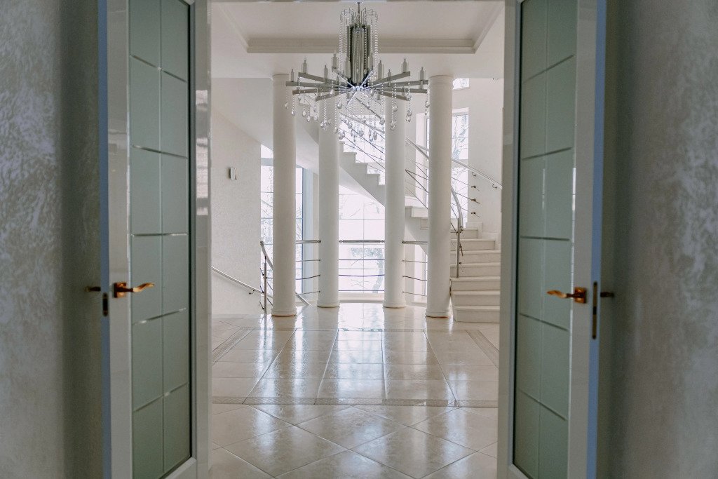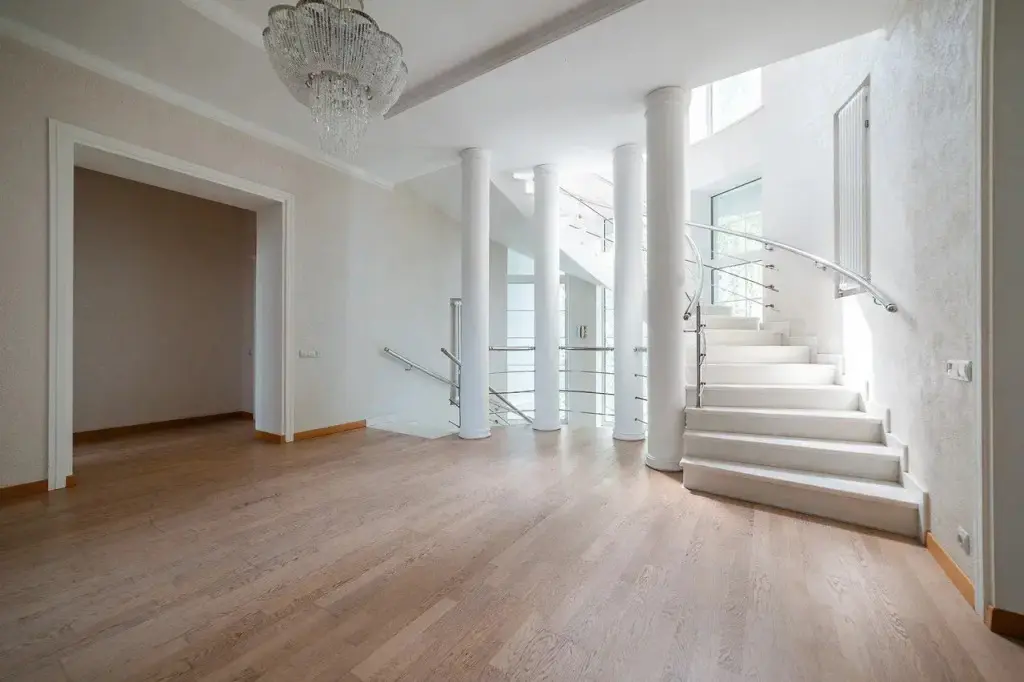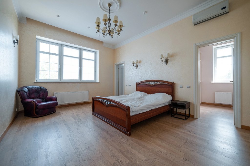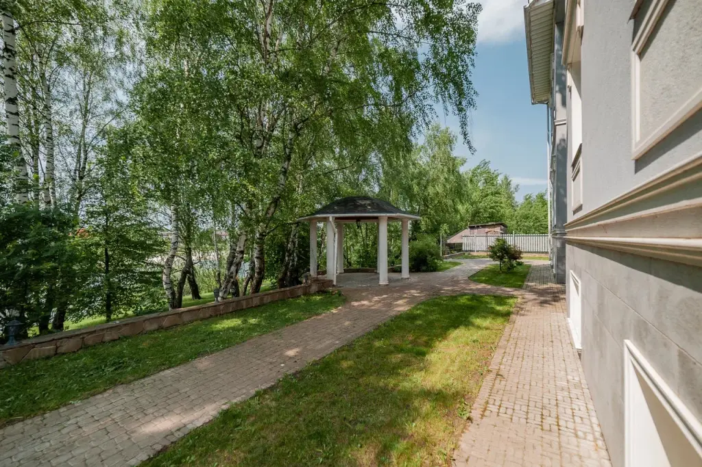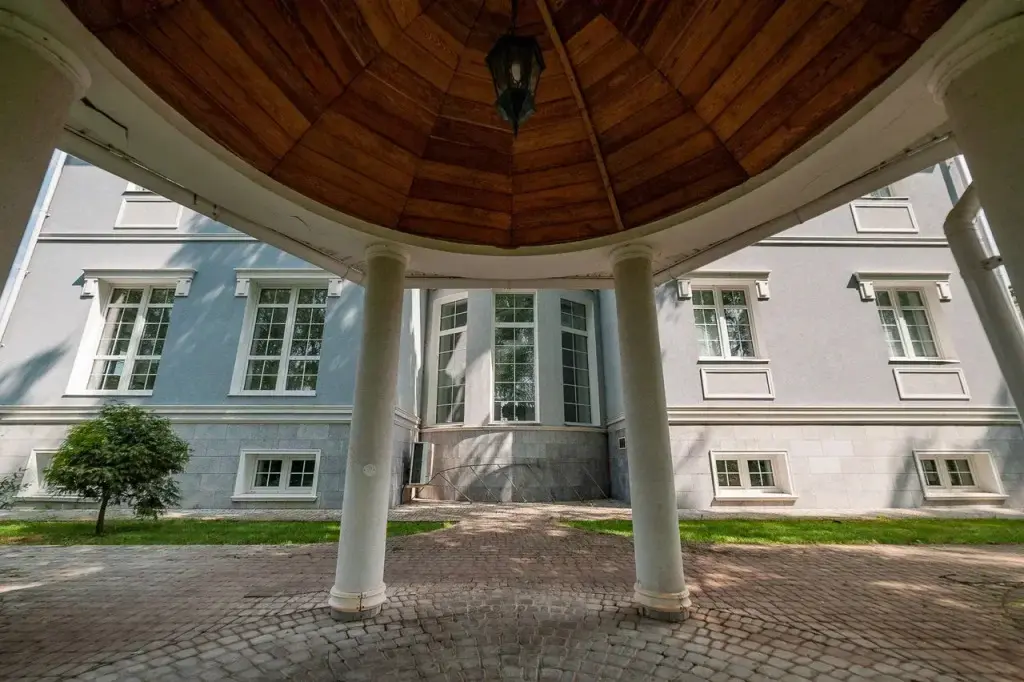 Усадьба представляет собой дом площадью 900 кв. м., который насчитывает 4 этажа, оснащённых лифтом для удобства передвижения. Внутри расположены 10 спален, каждая из которых имеет персональную гардеробную и собственный санузел — всего 32 спальных места.
