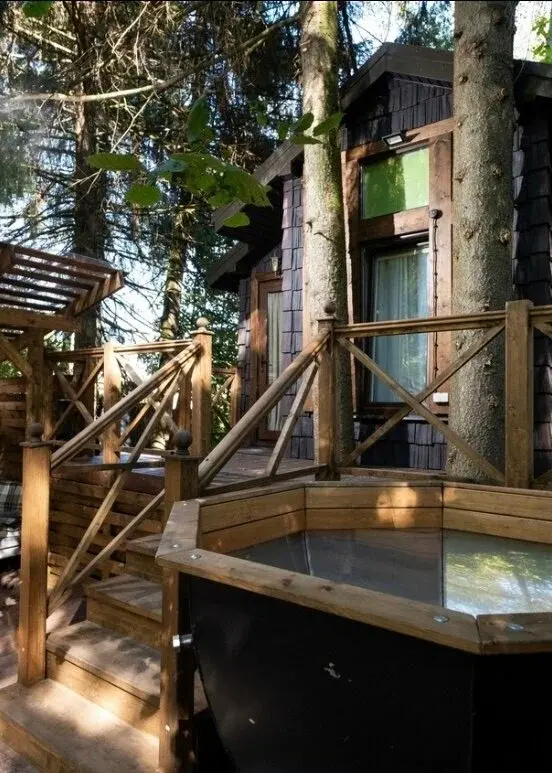 Каждый домик и сфера оборудованы собственной зоной отдыха с чаном или фурако, а также мангалом.
