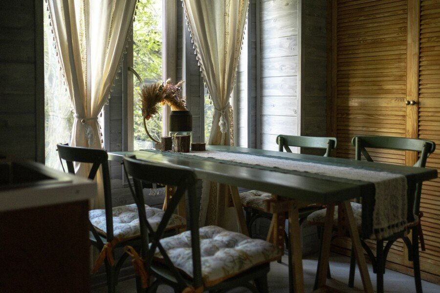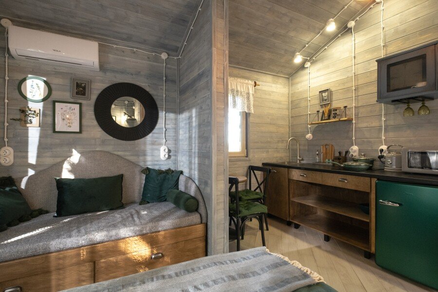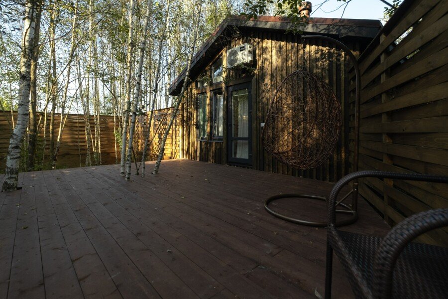 В каждом домике есть закрытая веранда и гриль для вечерних посиделок. А на кухне — все необходимое, чтобы приготовить любое блюдо, которое вам захочется.