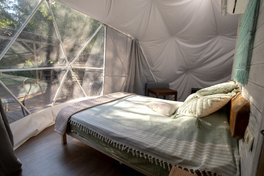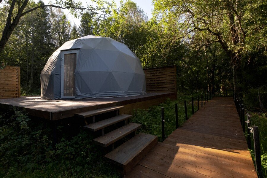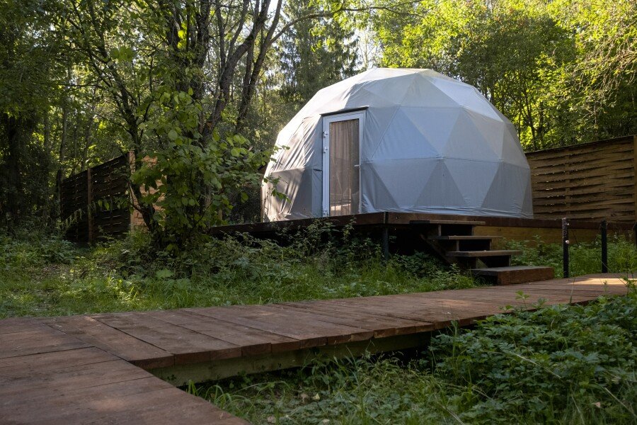 Глэмпинг «В кронах» — это роскошный отдых на природе в Подмосковье, гарантирующий уединение и спокойствие.