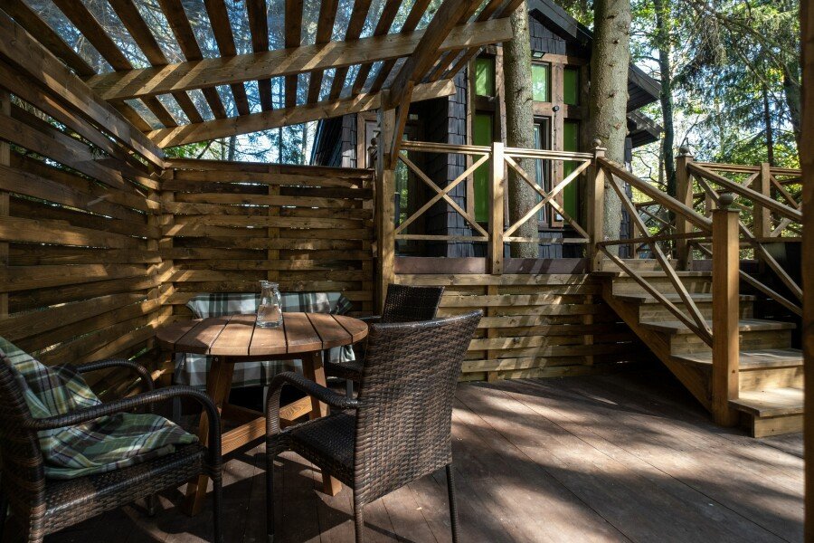 В глэмпинге «В кронах» позаботились о комфорте семей с детьми: предоставляются детские кроватки, стульчики и игры.