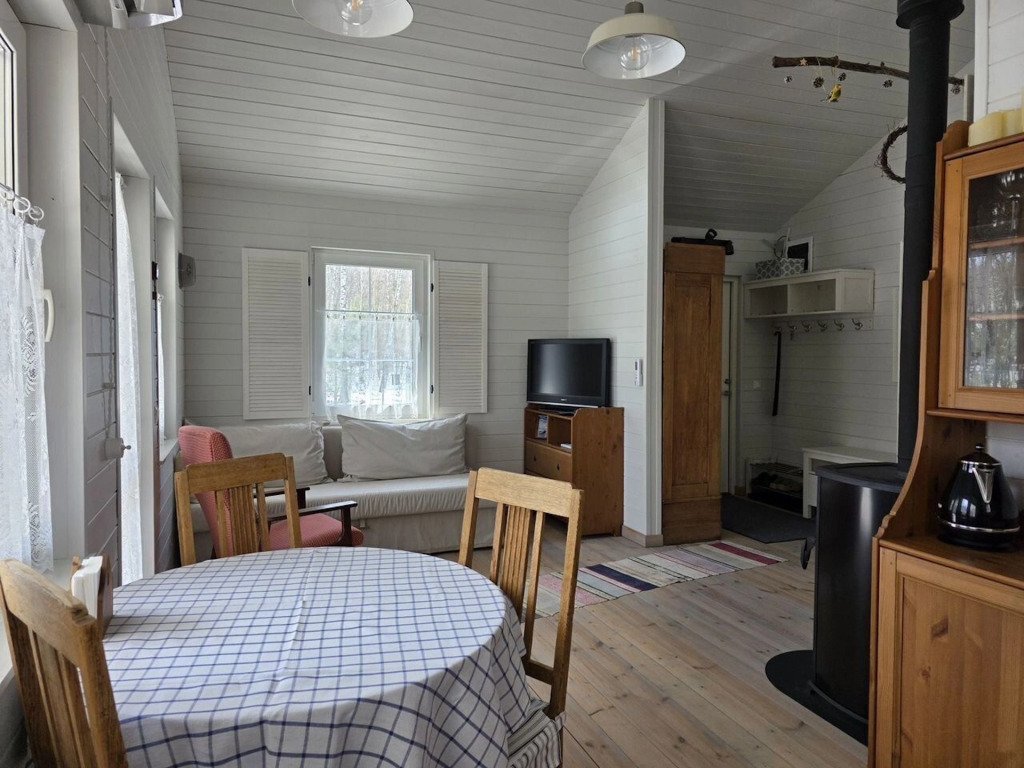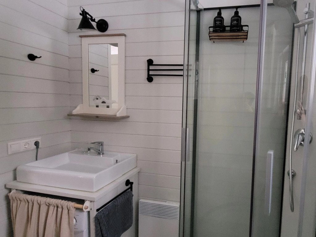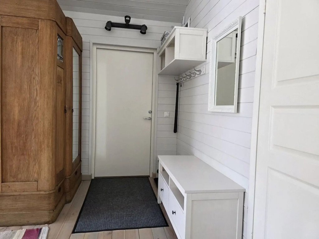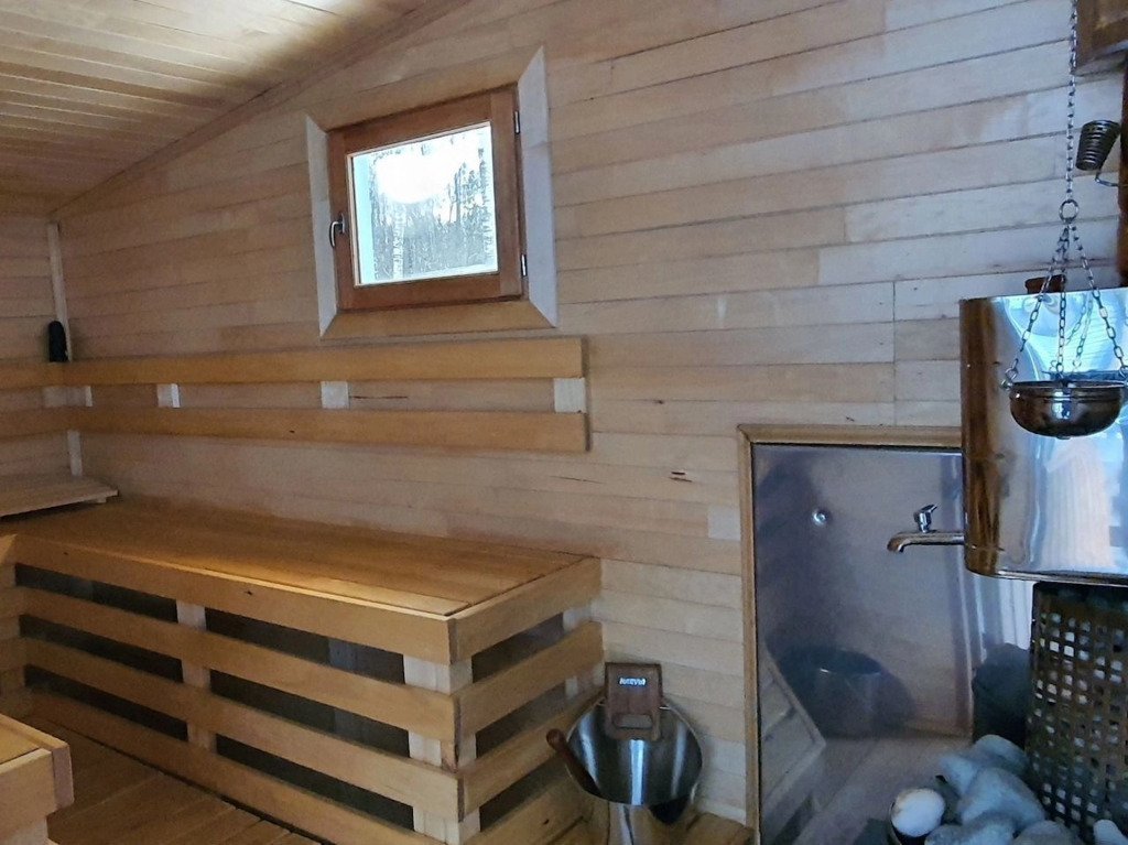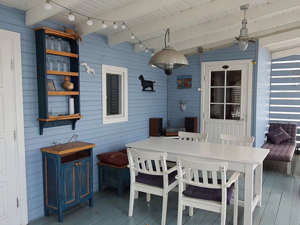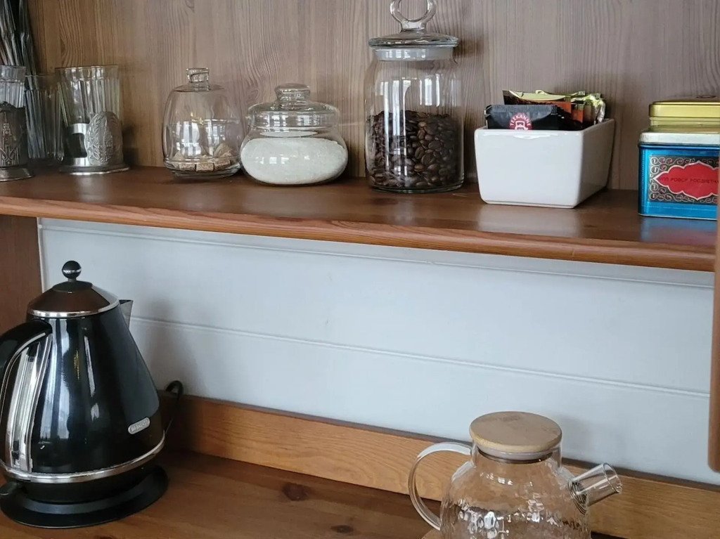 В частном доме 2 спальни: в одной двуспальная кровать, в другой кушетка: раскладывается в двуспальное место. Кухня-гостиная: диван, телевизор с подпиской на онлайн кинотеатр, Wi-Fi, печь-камин, кондиционер. В кухне есть индукционная плита, посудомоечная машина, холодильник, микроволновка, чайник, кофеварка. Санузел: душевая кабина, унитаз, раковина, стиральная машина, бойлер, фен, косметические средства. К услугам гостей постельное бельё, комплект полотенец. За доплату предоставляются детская кроватка и стул для кормления.