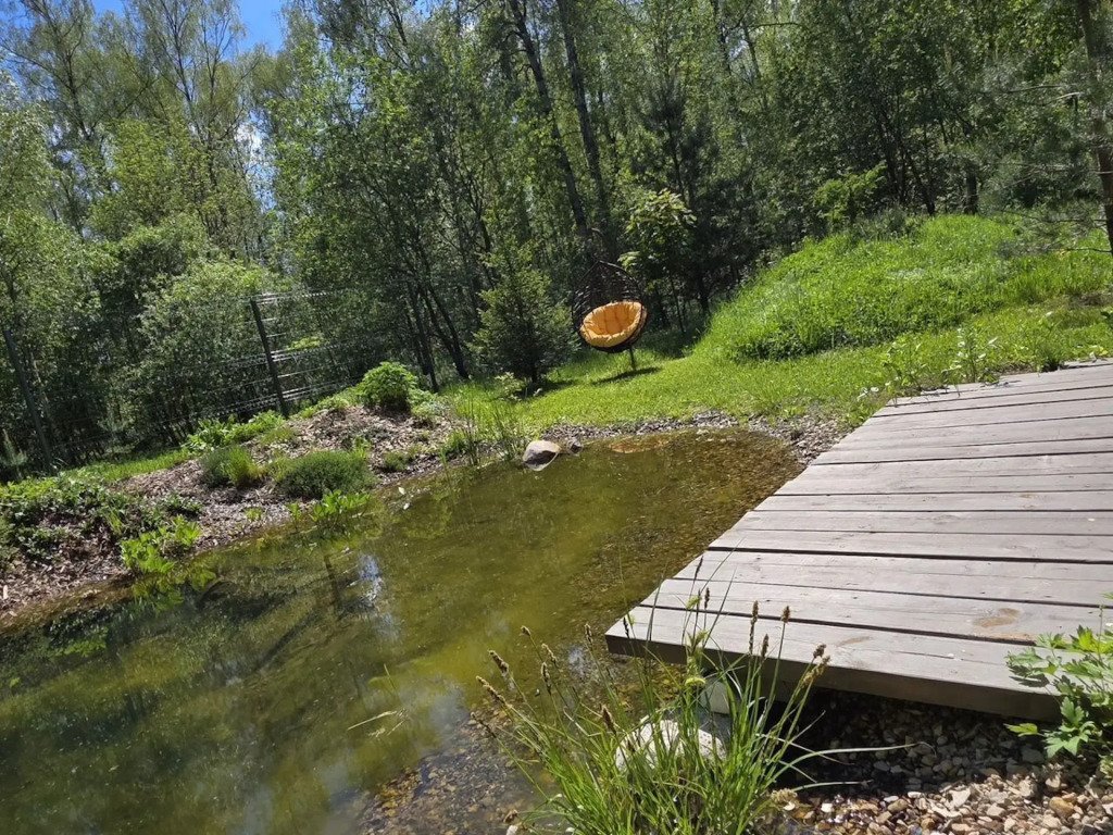 В распоряжении гостей участок 800 кв. м, есть берёзовый лес, калитка расположена с участка, летом можно прогуляться до лесного пруда, а зимой пройтись на лыжах. На территории есть детская площадка, асфальтированные дороги позволяют кататься на велосипедах, роликах, заниматься скандинавской ходьбой.