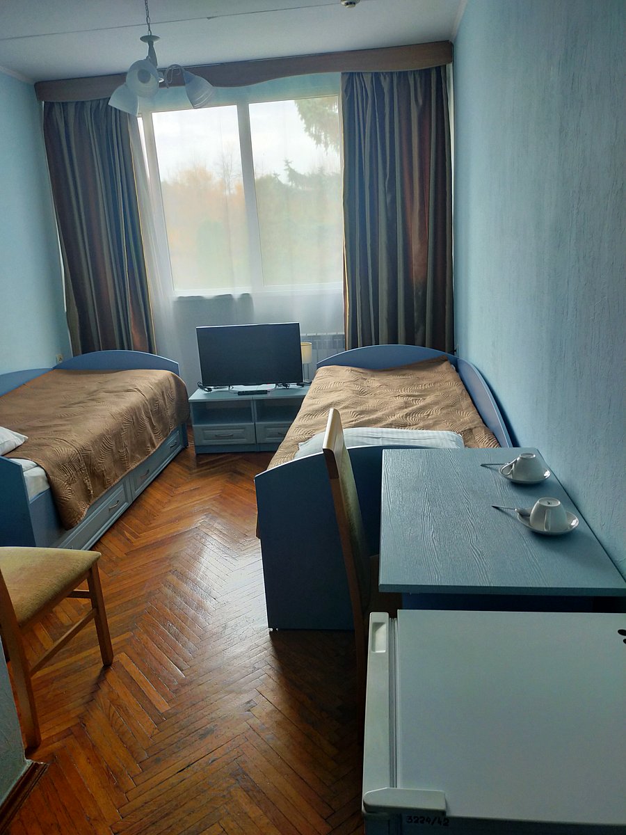 Однокомнатный номер выполнен в классическом стиле и оснащен всем необходимым для благоприятного отдыха. В номере имеются две односпальных кровати или одна двуспальная кровать, шкаф, тумбочки, стулья, вешалка для верхней одежды, холодильник, телевизор, санузел.
