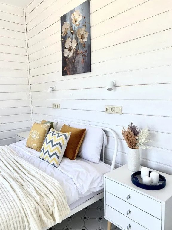 Четырёхместный семейный коттедж с красивым видом из окна 2 двуспальные кровати