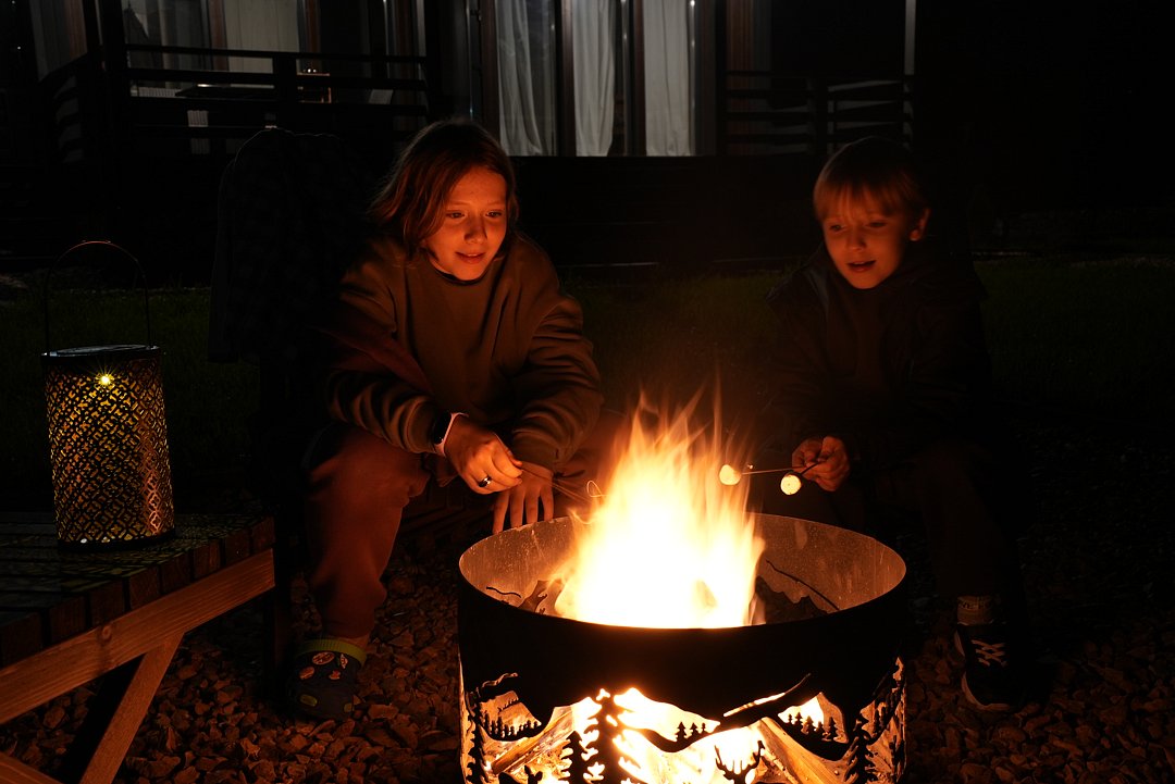 Вас ждет уютная костровая зона, созданная для теплых встреч с друзьями и близкими. Вы сможете насладиться треском дров и мягким светом пламени, а также приготовить что-нибудь вкусное на огне и устроить чаепитие.