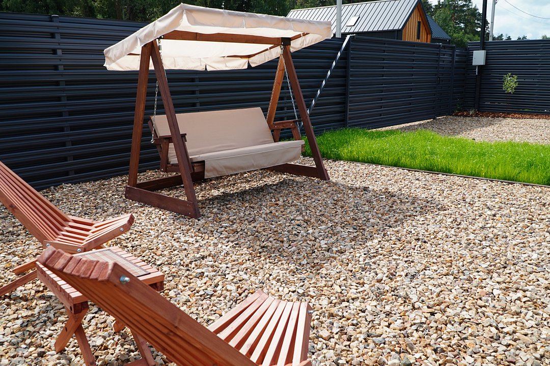 На территории каждого дома есть зона для отдыха с мангалами, удобными креслами и качелями для маленьких гостей. Вы сможете приготовить мясо, рыбу, морепродукты и овощи на гриле на открытом огне. Ваши друзья и близкие будут в восторге от такой загородной кухни.