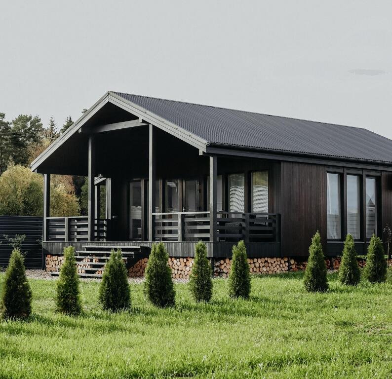 Интерьер домов вдохновлен философией Нyggе: теплые цвета, мягкие ткани и уютная мебель, включая большие двуспальные кровати. Вместительная терраса перед домом гарантированно станет главным центром притяжения для всей семьи теплыми летними вечерами.