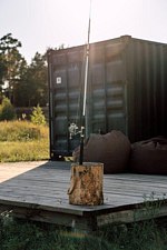 Внутри каждого модуля расположена широкая двуспальная кровать с чистым бельем, умывальник, напоминающий деревенский (но с постоянно теплой водой), розетки, продуманная система вентиляции и большое панорамное окно с видом на лес. А на веранде можно расслабиться в шезлонге и наслаждаться беседой о красоте природы.