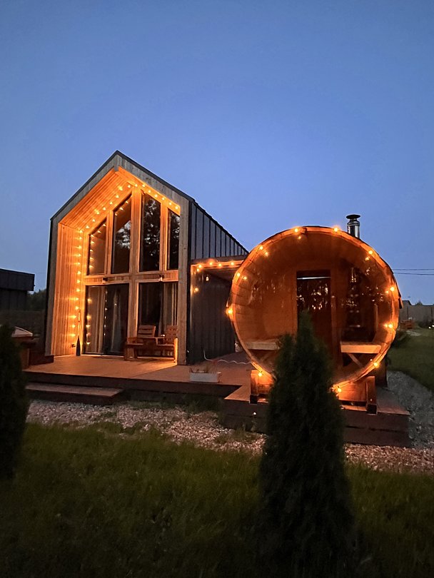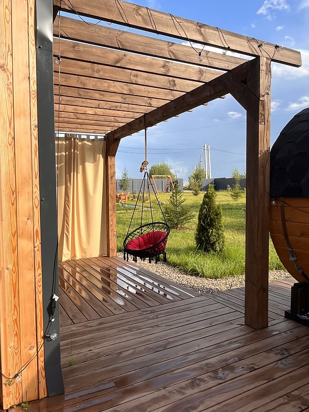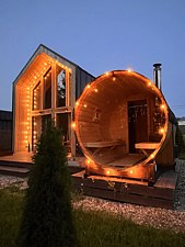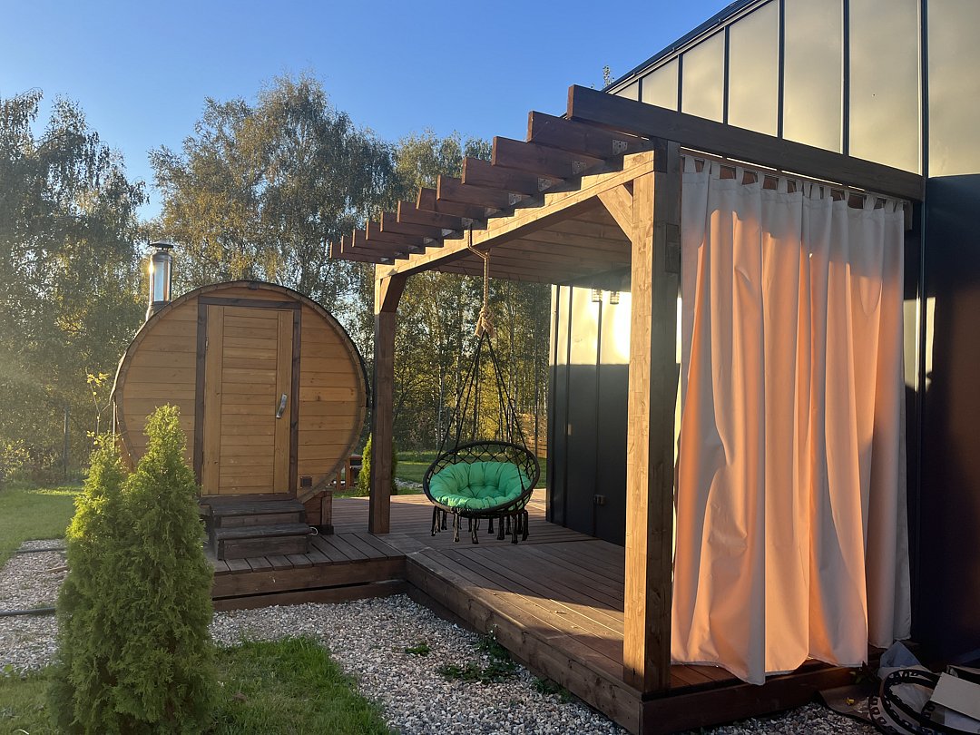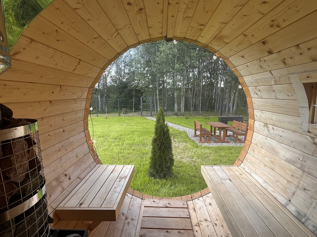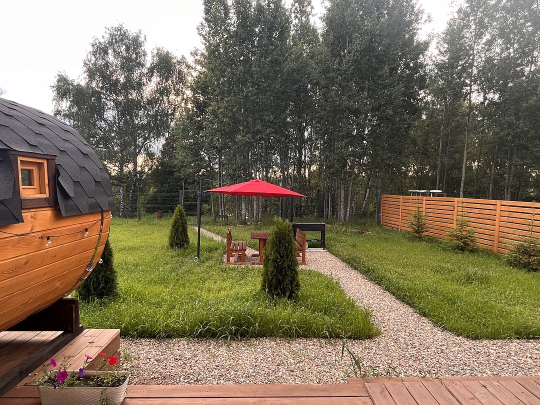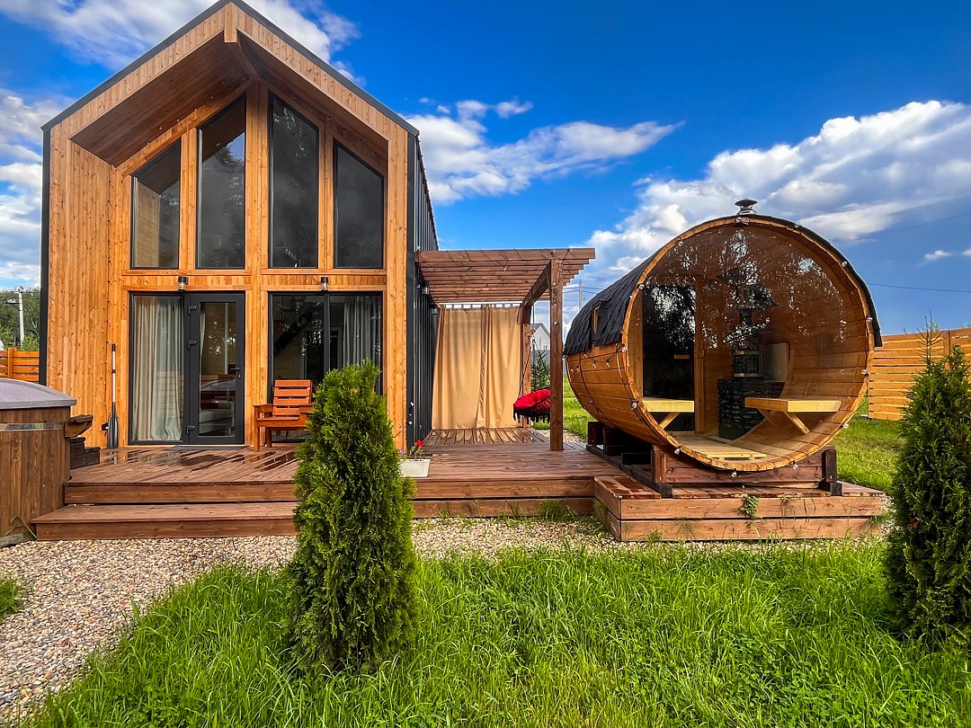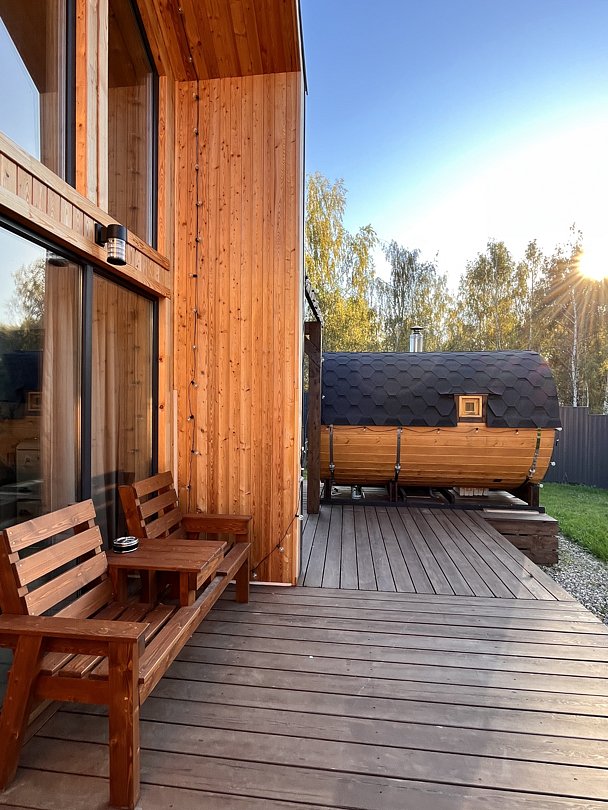 - баня-бочка с панорамным окном;