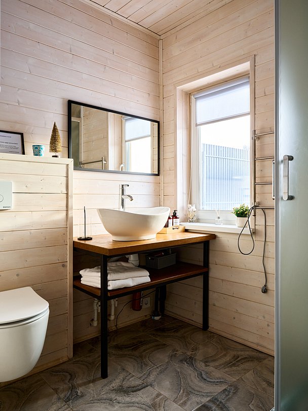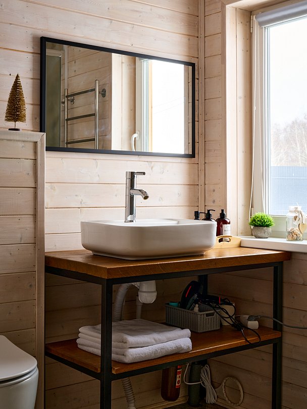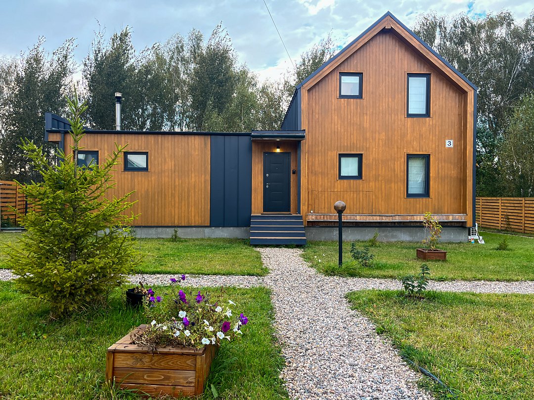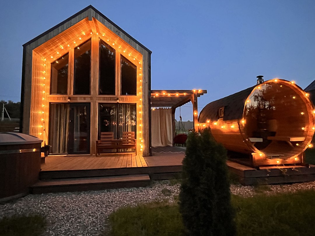 Дом в стиле барнхаус с баней-бочкой и купелью. Комфортный для размещения до 4-х человек. В доме есть все необходимое для комфортного проживания в любое время года.