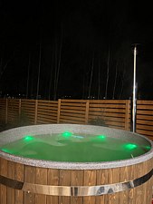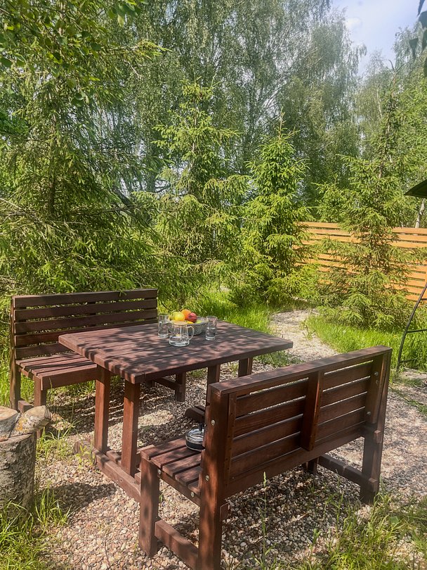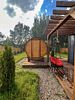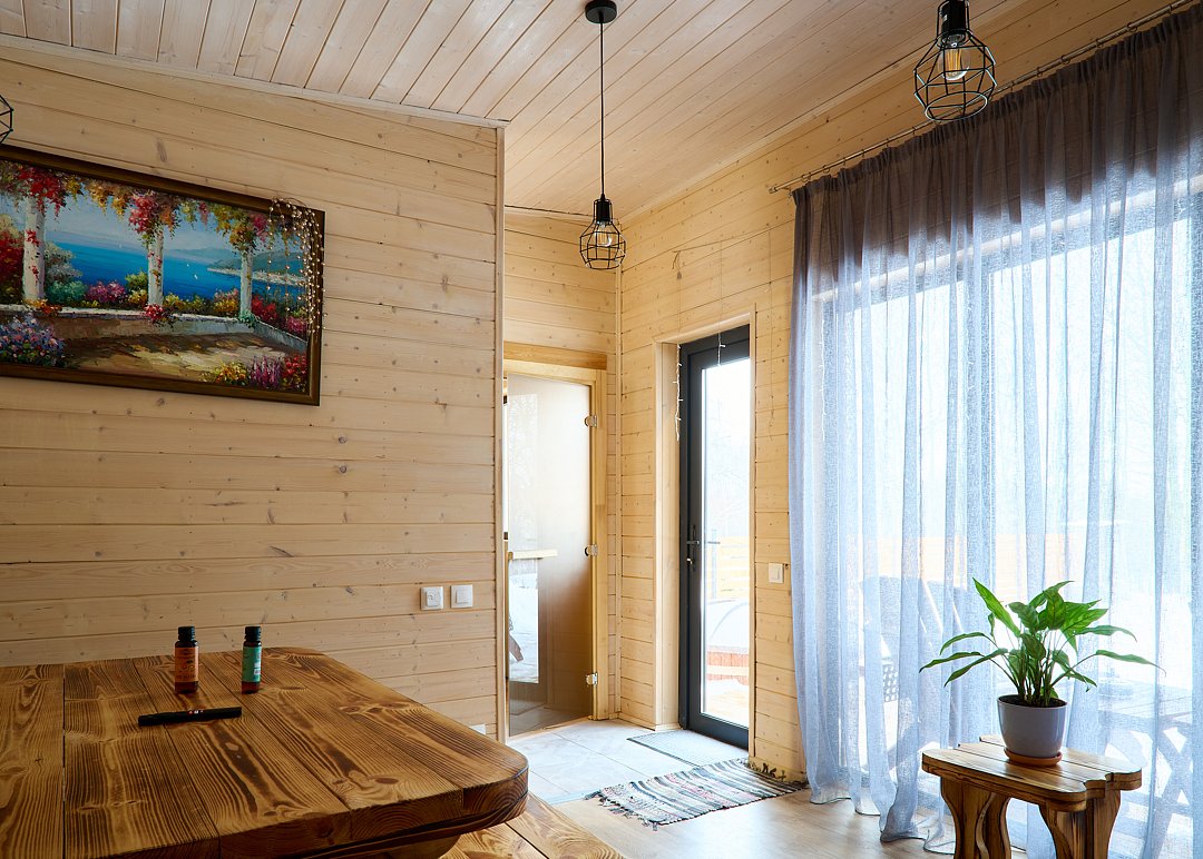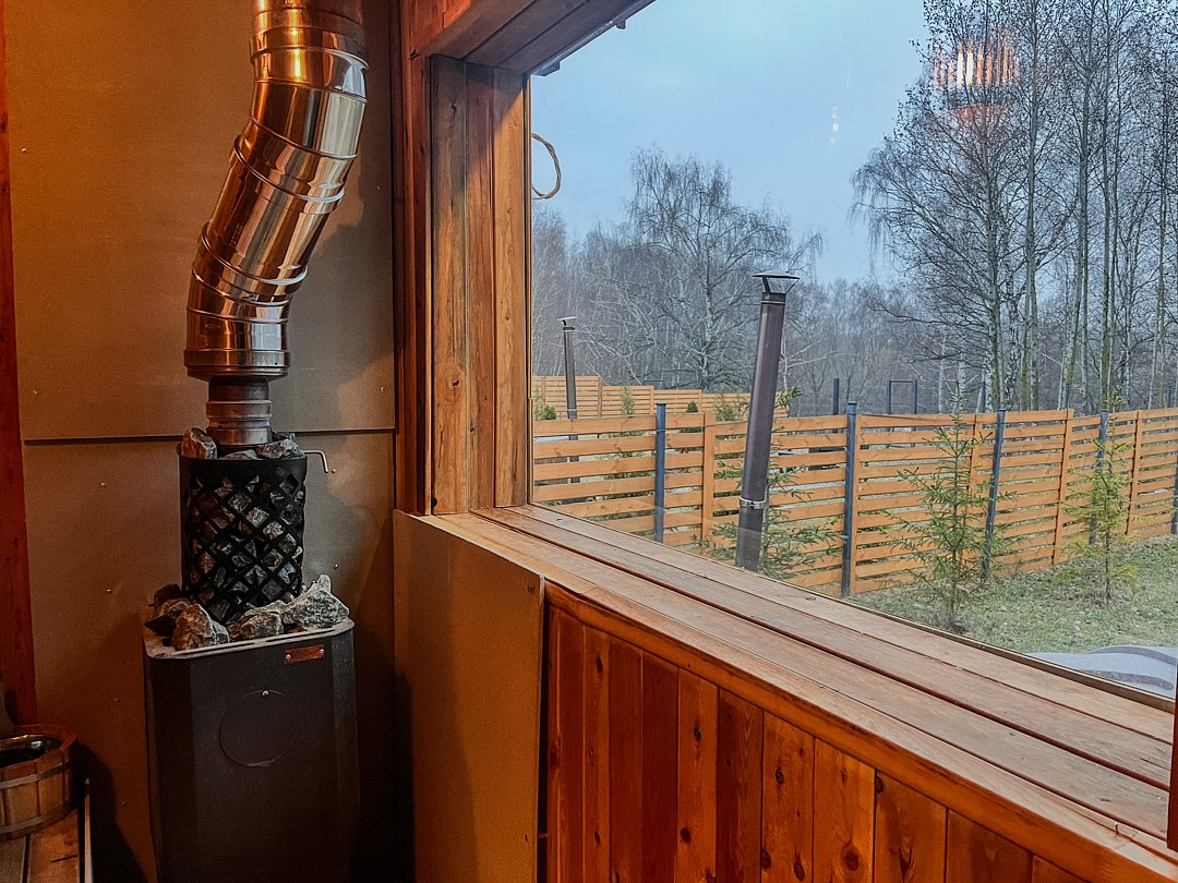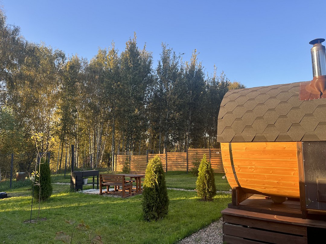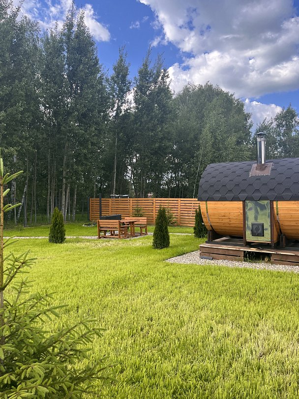 Баня доступна только при аренде дома. Есть возможность заказать сразу вместе с купелью.