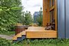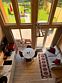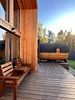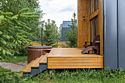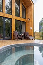 Из панорамных окон открывается прекрасный вид на реку. На территории террасы расположена горячая купель, удобные кресла и кофейный столик.
