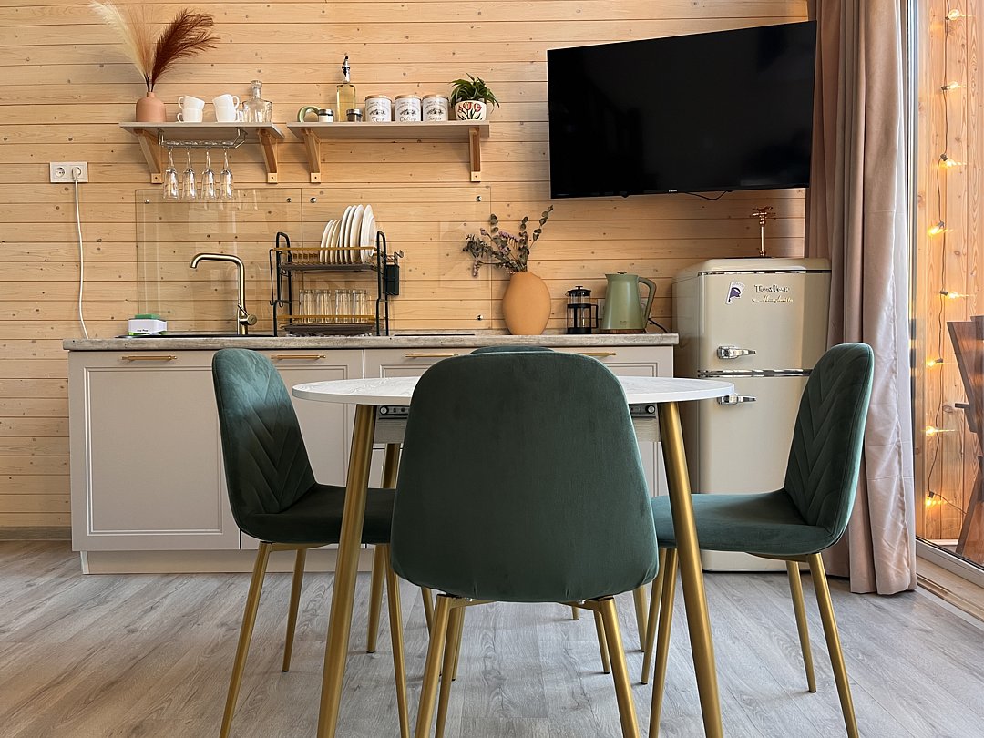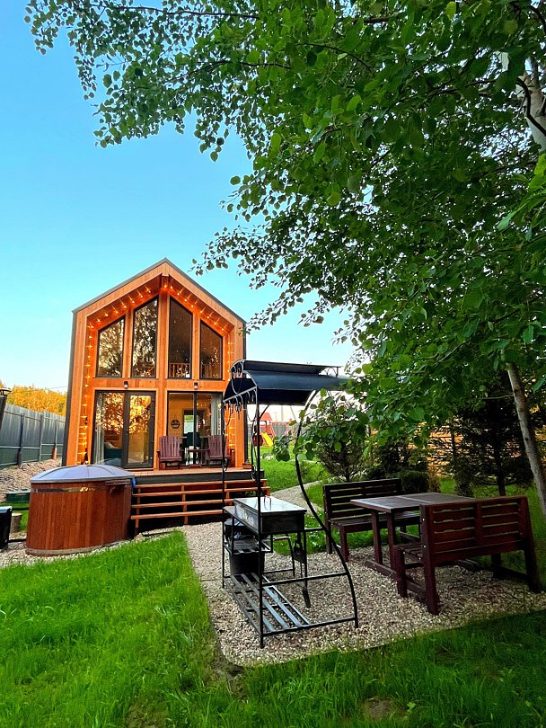 Вам будет доступно пять уютных домиков с домашней атмосферой дачи, которые подходят как для семейного отдыха, так и для романтических выходных и встреч с друзьями и близкими.