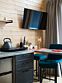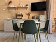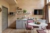 Кухня- гостиная с панорамными окнами с красивым видом на реку и выходом на террасу. На кухонной зоне есть все необходимое для приготовления еды и комфортного пребывания: большой холодильник, плита, микроволновая печь, посудомоечная машина, телевизор, посуда для приготовления и сервировки. Во всех комнатах есть кондиционеры.