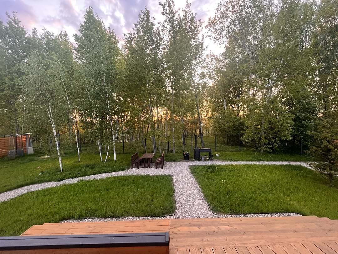- баня с панорамным окном. В бане есть комната отдыха с большим столом и телевизором, отдельный санузел и душевая;