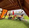 Для маленьких гостей есть детская площадка. И большой батут, на котором могут прыгать и дети в взрослые.