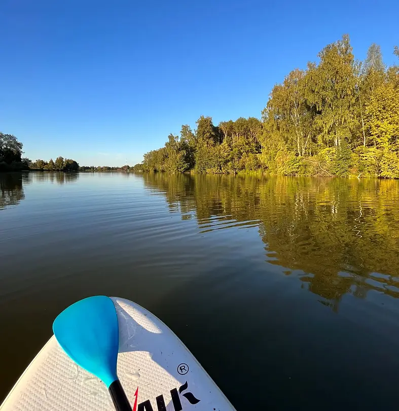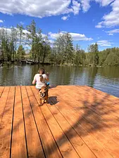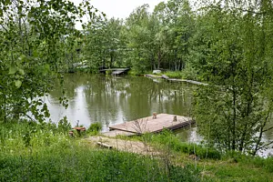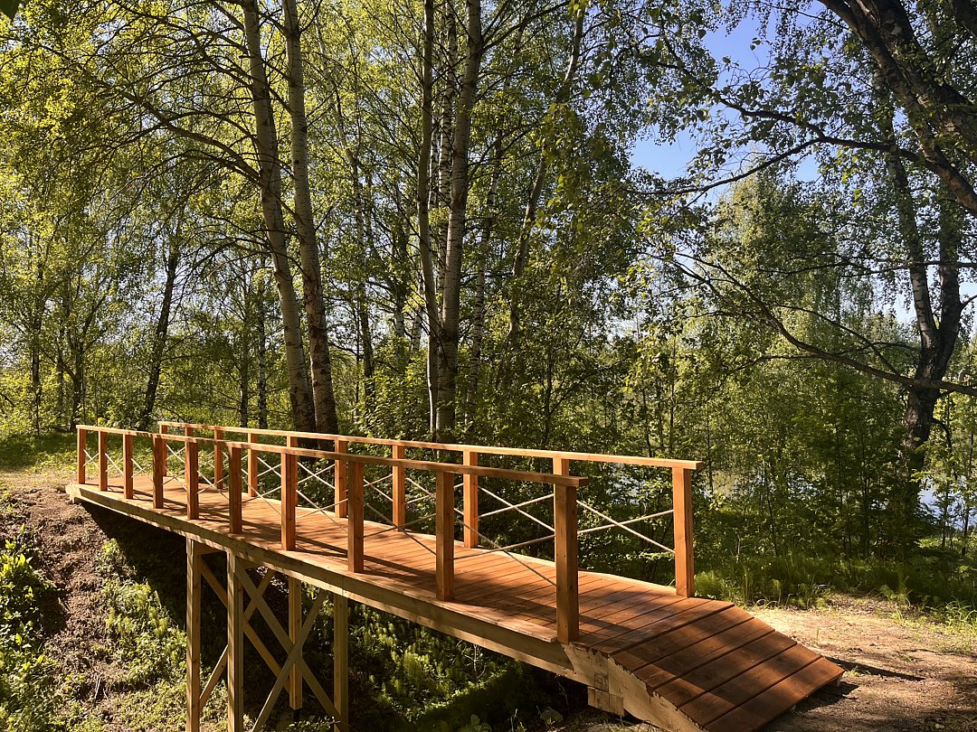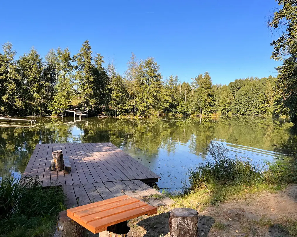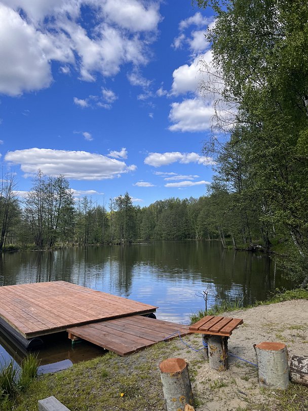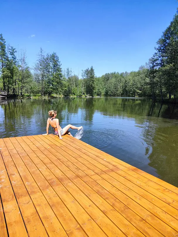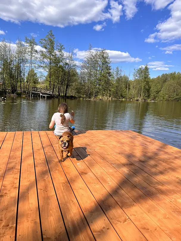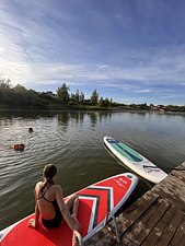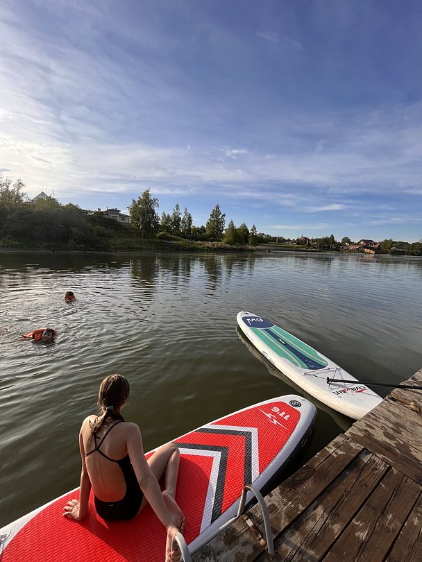 На реке есть небольшой пирс. На нем можно загорать, устроить пикник, рыбачить и любоваться красивым видом реки. С пирса удобно спускаться на сапборды.