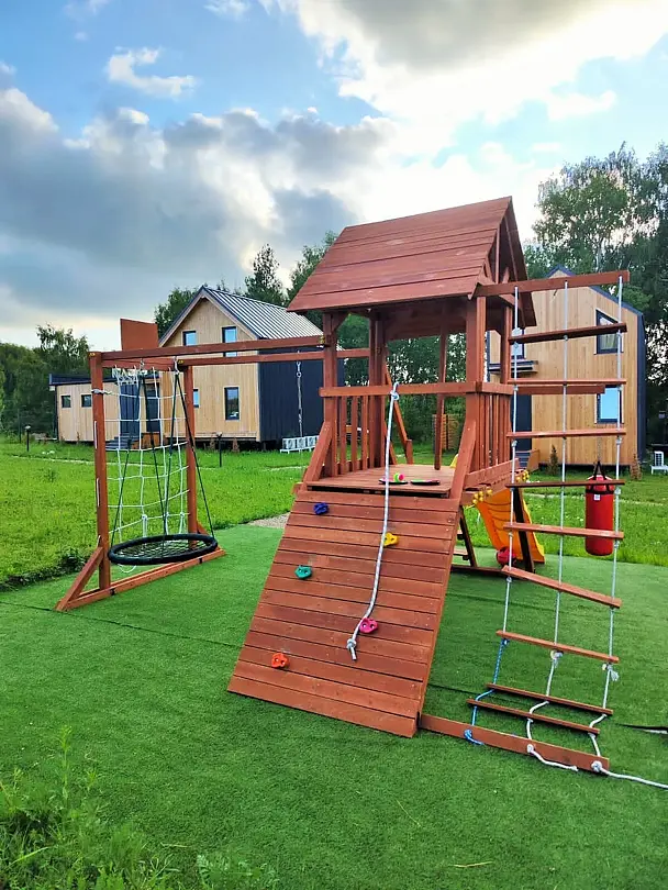 Для самых юных постояльцев предусмотрена детская площадка, большой батут и спортивная площадка.