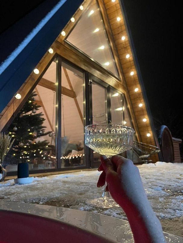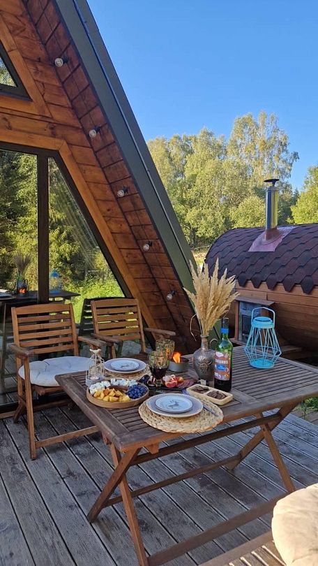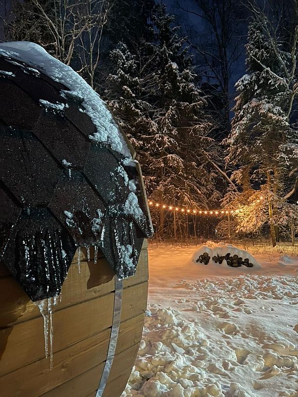 Заезд с 16:00, выезд до 13:00. Баня-бочка и подогреваемая купель доступны за дополнительную плату.