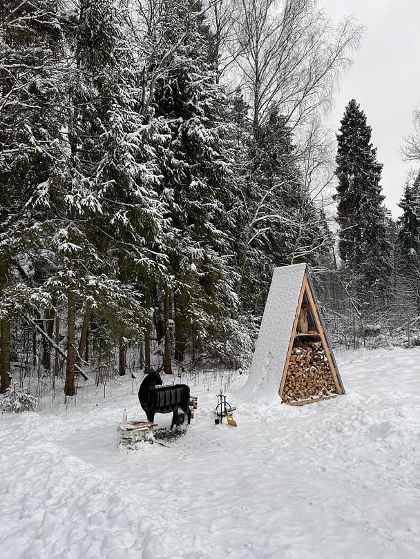 На территории всего два домика, у каждого дома своя спа-зона (баня-бочка с панорамным окном в лес и подогреваемая на дровах купель), уютная терраса и мангальная зона в лесу. Дрова входят в стоимость.