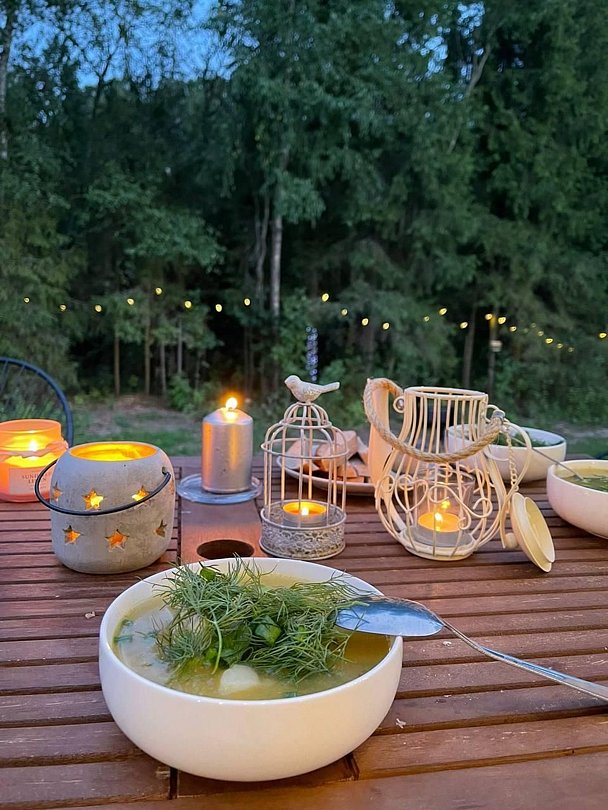 Гости глэмпинга «Vlesu» могут взять с собой удочки и за десять минут неспешной прогулки добраться до живописного водохранилища, где рыбная ловля доступна круглый год. Это идеальное место для расслабляющего времяпровождения на природе и наслаждения тихими моментами у воды.