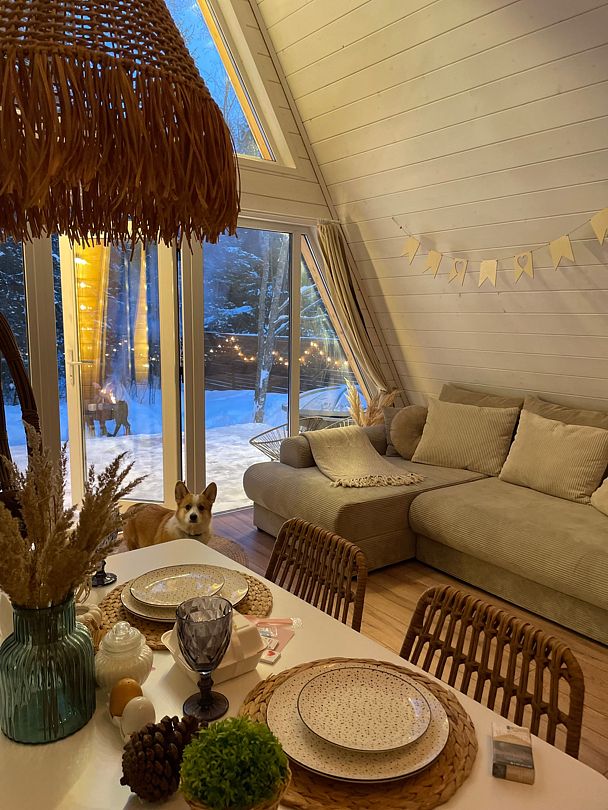 Аренда афрейм дома в Подмосковье. Мы находимся в 120 км от МКАД по Новой Риге, в окружении леса. Настоящий инста-домик, оформленный в бохо-стиле.