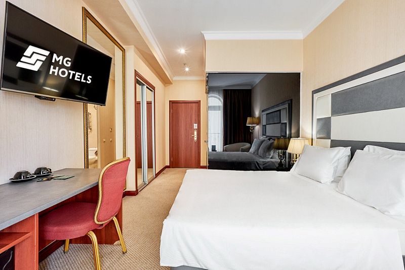 В номере есть удобный письменный стол и высокоскоростной Wi-Fi, а также индивидуальный сейф для ценных вещей и документов. Номера укомплектованы мини-баром, чайной станцией, телефоном, феном, гладильными принадлежностями и халатами.