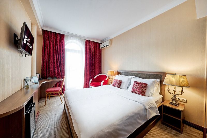 Мини-бар не входит в стоимость номера и оплачивается отдельно. Под запрос предоставляются косметический и бритвенный наборы. Окна номера выходят на тихую улицу, внутренний двор и на город, так что можете быть уверены: вашему отдыху не помешает шум.