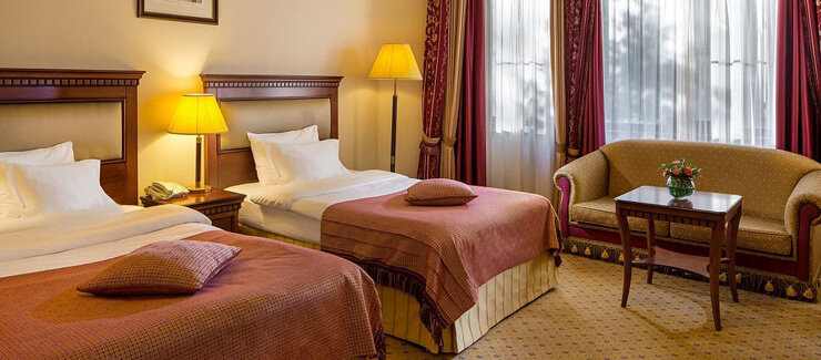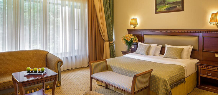 Отель расположен в живописном государственном заповеднике «Долина реки Сетунь», всего в 13 километрах от Красной площади и Кремля. В отеле представлено несколько корпусов, комфортабельные номера которых оформлены в изысканном классическом стиле. В каждом номере есть отдельная ванная комната с косметическими наборами и халатами, а также стандартные удобства, включая кабельное телевидение, кондиционер, высокоскоростной Wi-Fi и мини-бар.