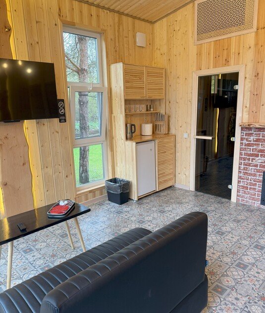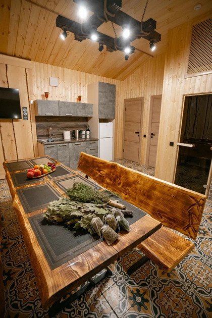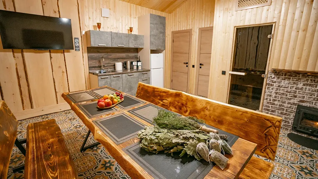 Время заезда с 17:00, время выезда до 14:00. Можно воспользоваться баней и бассейном за дополнительную плату. При бронировании от двух суток — два часа купания в теплом бассейне под открытым небом в подарок.